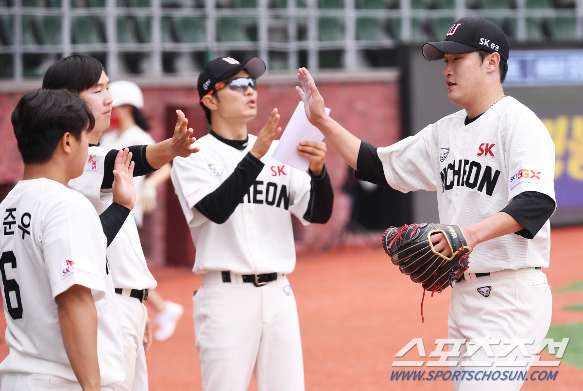 SK는 6회까지 3안타(1홈런) 3볼넷 3탈삼진 4실점(3자책)으로 호투한 박종훈에 이어 7회부터 불펜진을 가동해 틀어막기에 나섰다. 7회초 서진용이 1안타 무실점으로 막은 뒤 8회초엔 김정빈이 나서 무실점을 이었고, 9회초엔 마무리 하재훈이 경기를 마무리했다.