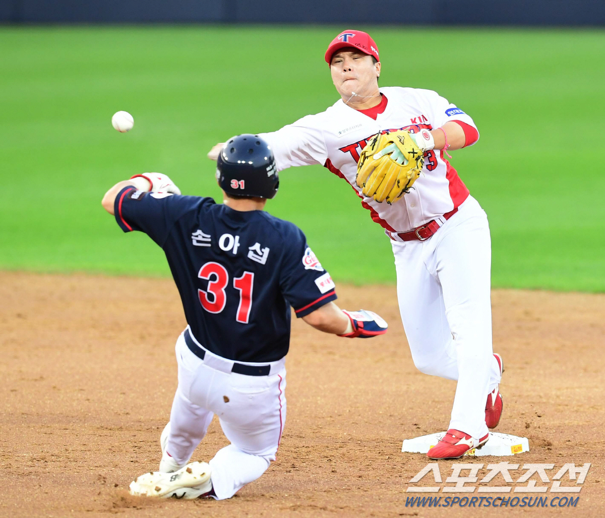◇롯데 손아섭이 3회초 1사 1,2루에서 전준우 땅볼때 2루에서 포스아웃 되고 있다. 광주=최문영 기자 deer@sportschosun.com /2020.06.04/