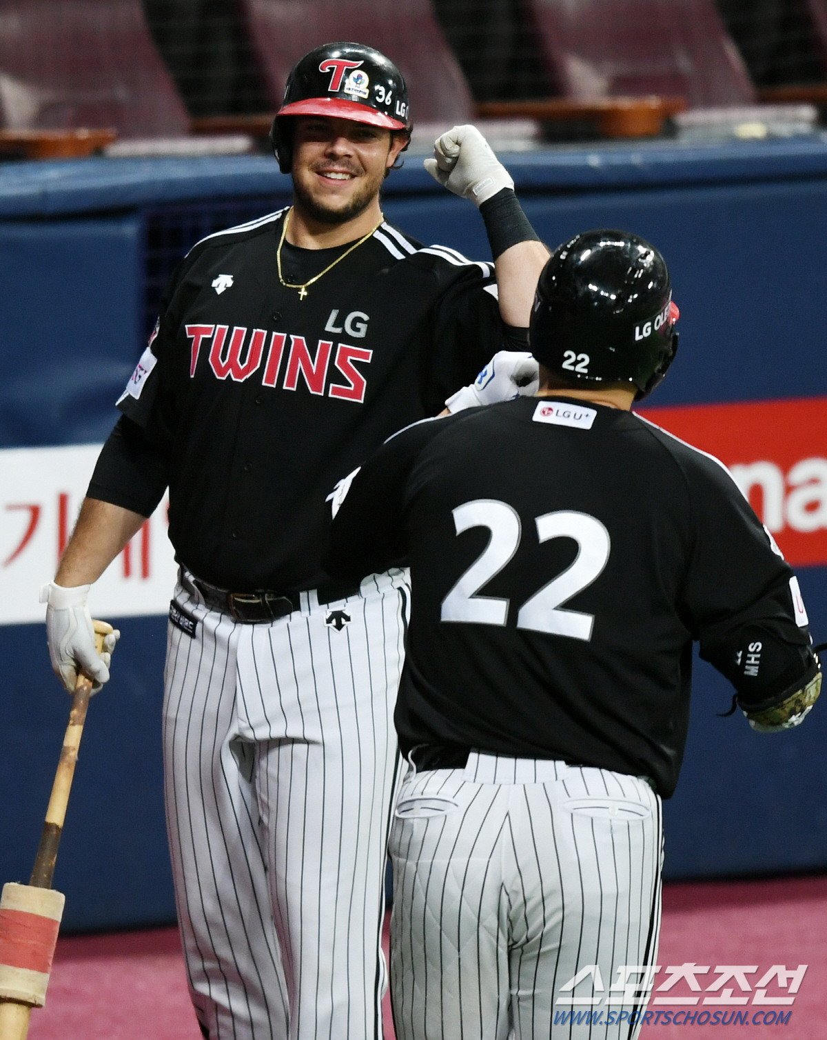 2020 KBO리그 LG 트윈스와 키움 히어로즈의 경기가 7일 고척스카이돔에서 열렸다. 7회초 1사 LG 김현수가 솔로포를 치고 들어오며 라모스의 축하를 받고 있다. 고척=정재근 기자 cjg@sportschosun.com/2020.06.07/