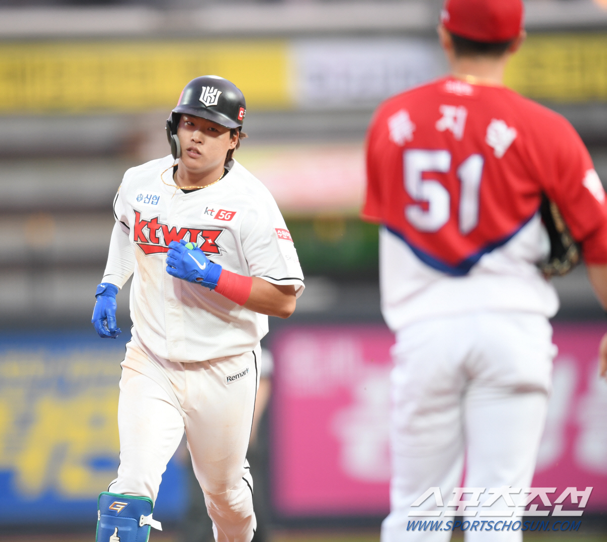 강백호는 지난달 22일 손목 인대 손상으로 1군 엔트리에 말소됐다. 이후 주사 치료와 재활을 병행했던 강백호는 1군 부상자 명단에 등재됐다. 이후 첫 홈런이자 시즌 6호 홈런을 쏘아올렸다. 수원=김진회 기자 manu35@sportschosun.com