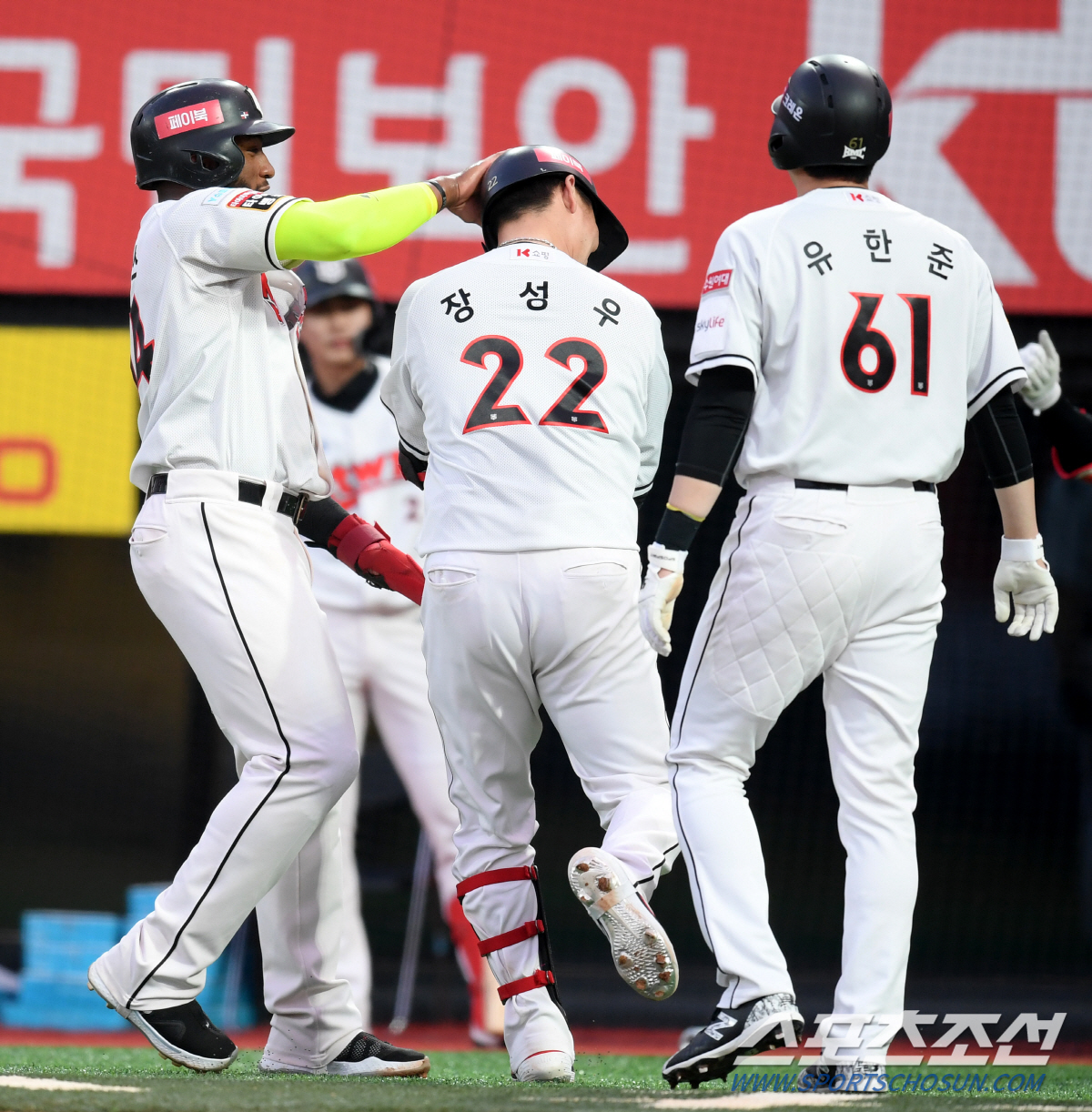 시즌 4호 홈런을 기록한 장성우의 활약에 힘입어 KT는 4회 초 현재 5-0으로 앞서가고 있다. 수원=김진회 기자 manu35@sportschosun.com