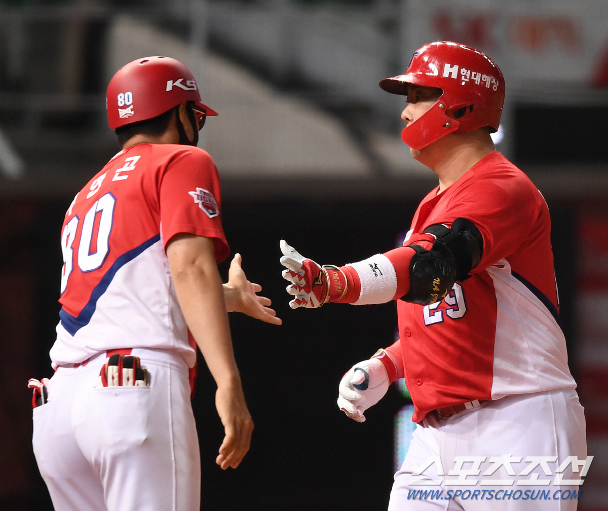 2020 KBO리그 KIA 타이거즈와 SK 와이번스의 경기가 12일 오후 인천 SK행복드림구장에서 열렸다. 6회초 1사 1루 KIA 오선우가 대타로 나와 투런포를 들어오며 터커의 축하를 받고 있다. 인천=정재근 기자 cjg@sportschosun.com/2020.06.12/