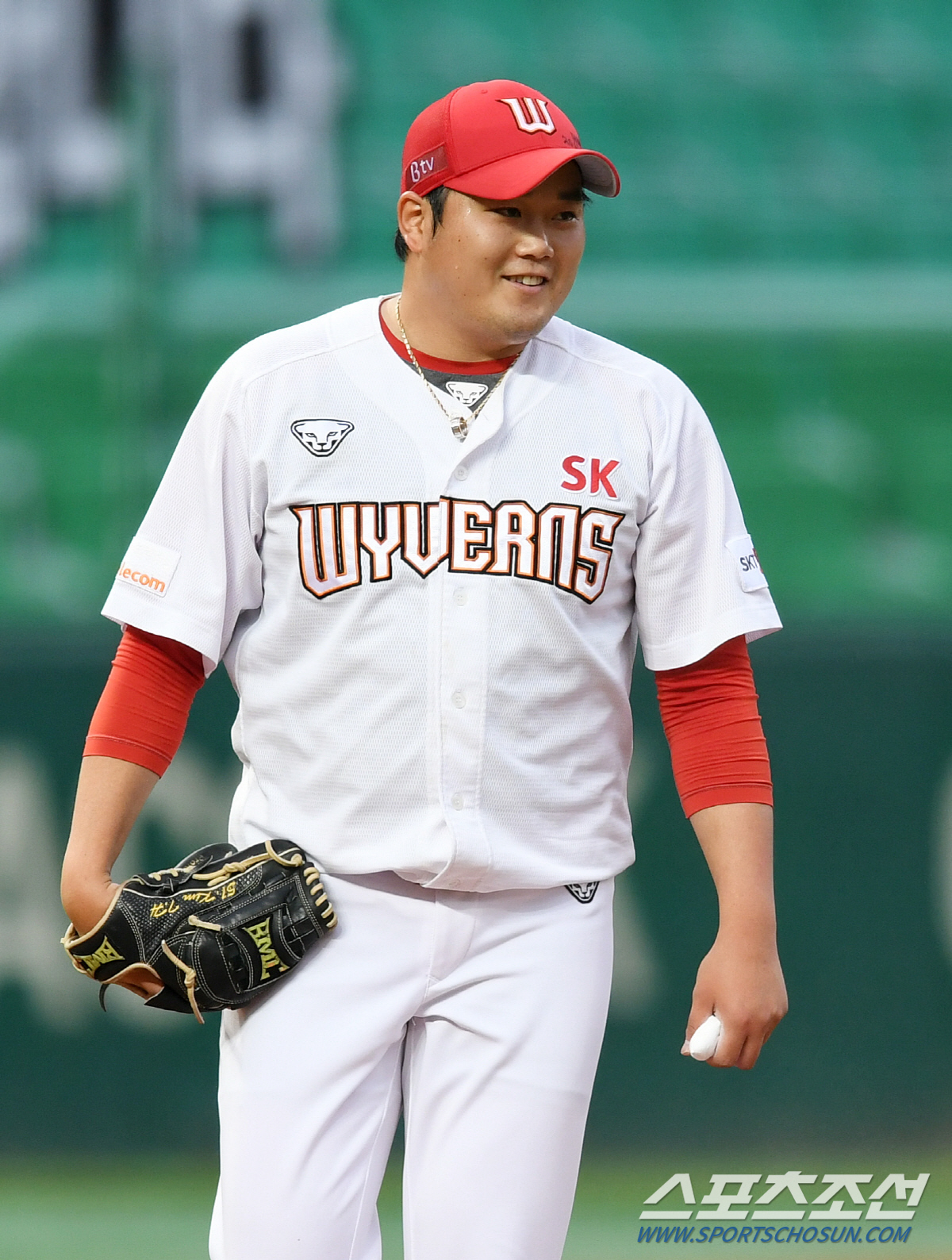 [인천=스포츠조선 나유리 기자]SK 와이번스 김태훈이 5이닝을 채웠지만 승리 요건은 갖추지 못하고 물러났다.