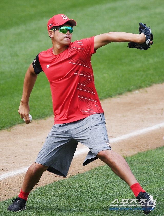 | SK 레드 훈련복 입고 등장한 이태양 |