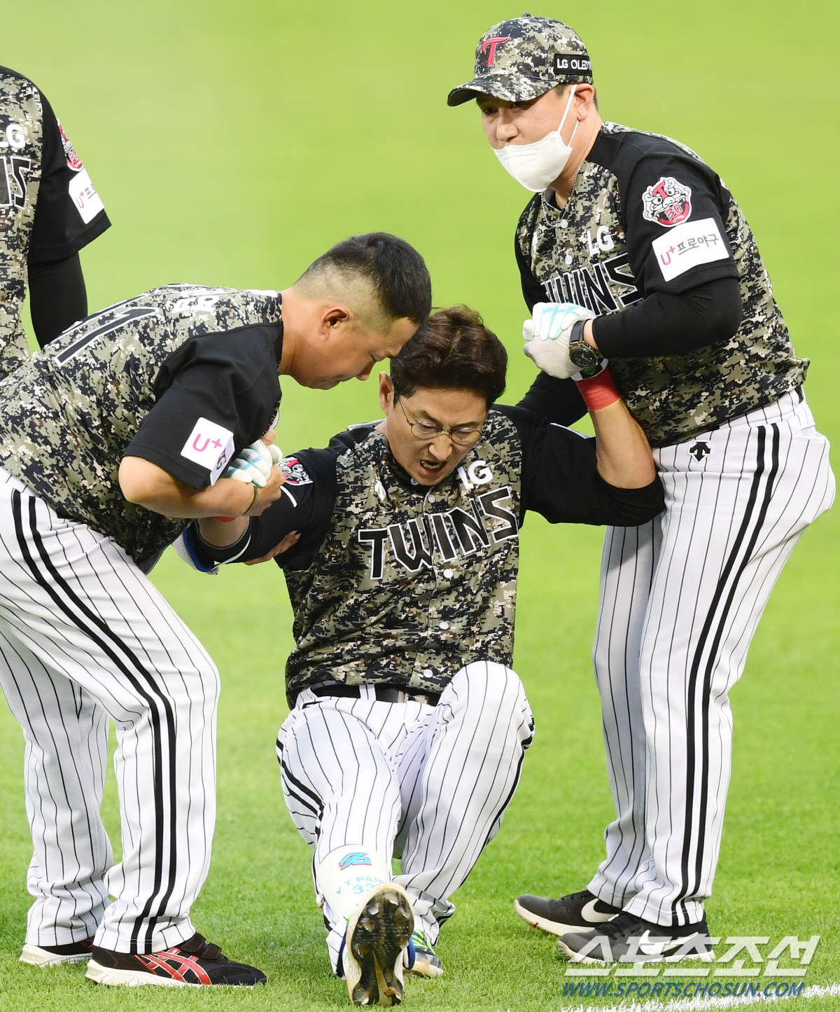 2사 1,3루에서 첫 타석에 들어선 박용택은 키움 선발 최원태의 체인지업을 받아쳐 2루쪽으로 땅볼을 쳤다. 키움 유격수 김하성이 달려나가면서 캐치해 1루로 던졌지만, 박용택의 발이 빨라 내야안타. 그러나 박용택은 베이스를 밟은 뒤 절룩거리다 외야 그라운드에 드러누웠다. 고통스러운 표정을 짓던 박용택은 트레이너의 부축을 받고 더그아웃으로 들어갔다. 김호은이 1루 대주자로 기용됐다.