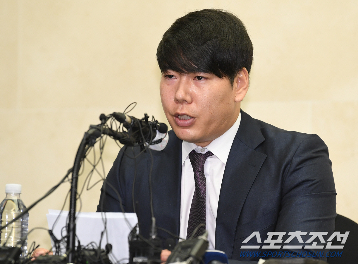 강정호는 23일 서울 상암동 스탠포드 호텔에서 공식 기자회견을 가졌다. 지난 5일 입국한 강정호는 2주 자가 격리를 마치고 처음 대중들에게 모습을 드러냈다. 지난달 25일 한국야구위원회(KBO)가 상벌위원회를 열어 1년 유기실격 및 봉사활동 300시간의 제재를 내린 뒤 약 한 달만이다. 1년 유기실격으로 복귀의 길이 열리자 강정호는 기자회견에 나섰다.