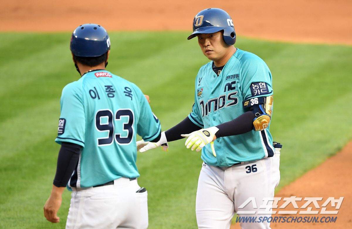 2020 KBO리그 두산 베어스와 NC 다이노스의 경기가 27일 서울 잠실야구장에서 열렸다. 8회초 1사 2루 NC 권희동이 안타를 날린 뒤 숨을 고르고 있다. 잠실=박재만 기자 pjm@sportschosun.com