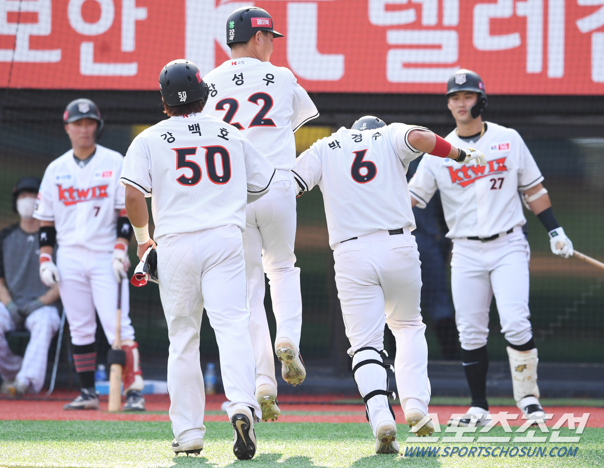 KT는 8회말 장성우의 좌전 안타에 이어 배정대가 키움 신재영을 상대로 좌월 투런포를 뽑아냈고, 심우준의 2루타와 조용호의 적시타로 1점을 더 추가하면서 일찌감치 승부를 갈랐다. 키움은 9회초 2점을 만회하는데 만족해야 했다.