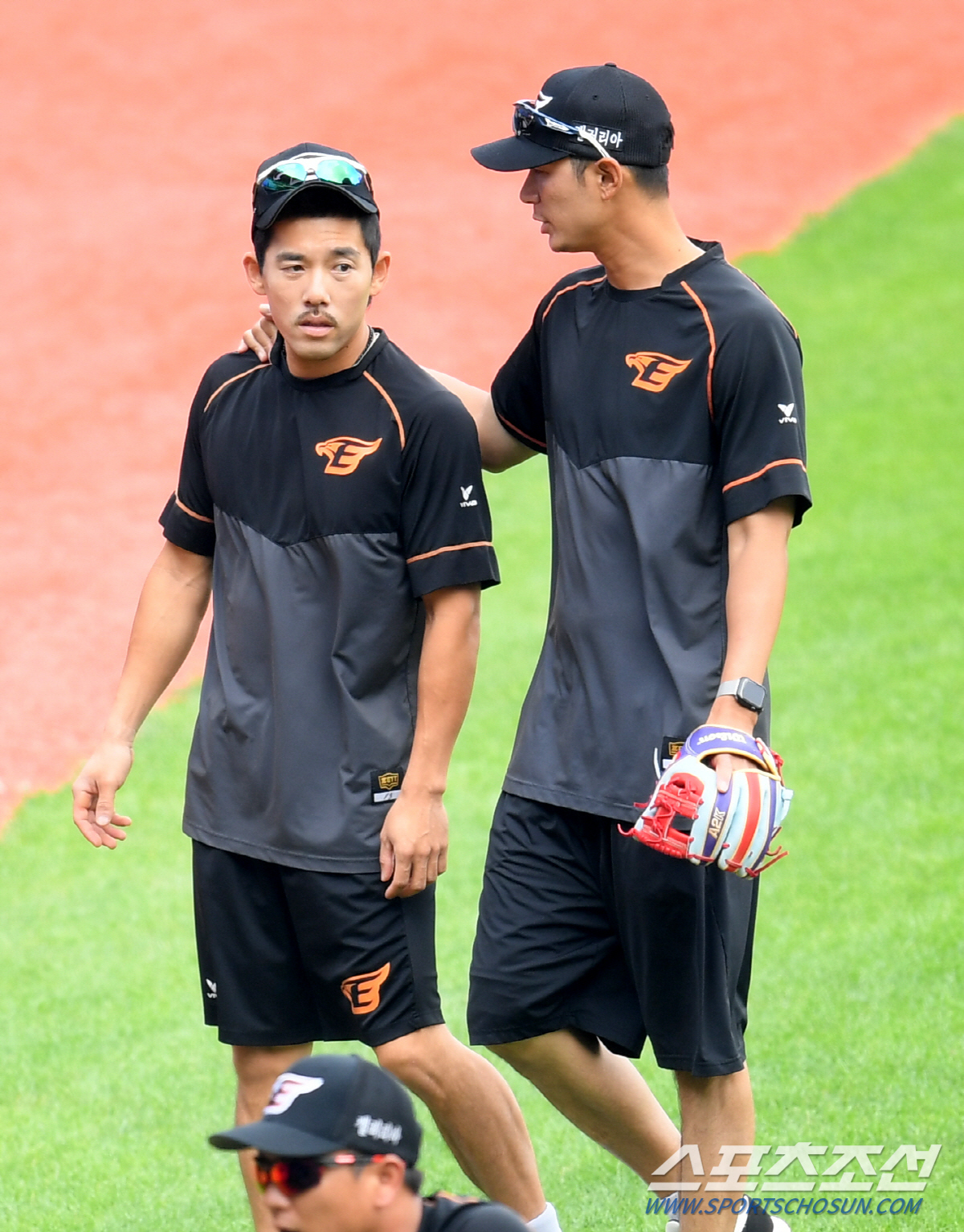 한화 이글스와 LG 트윈스의 2020 KBO 리그 경기가 17일 잠실구장에서 열릴 예정이다. 한화 추승우 코치와 이용규가 이야기를 나누고 있다. 잠실=허상욱 기자 wook@sportschosun.com