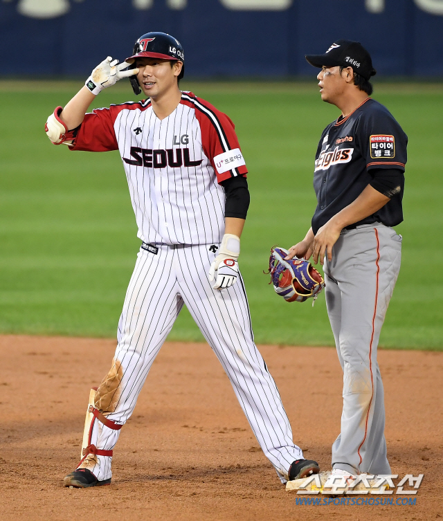 2020 KBO리그 LG 트윈스와 한화 이글스의 경기가 19일 서울 잠실야구장에서 열렸다. 8회말 1사 1,2루 LG 홍창기가 역전 적시타를 날린 뒤 환호하고 있다. 잠실=박재만 기자 pjm@sportschosun.com/2020.07.19/