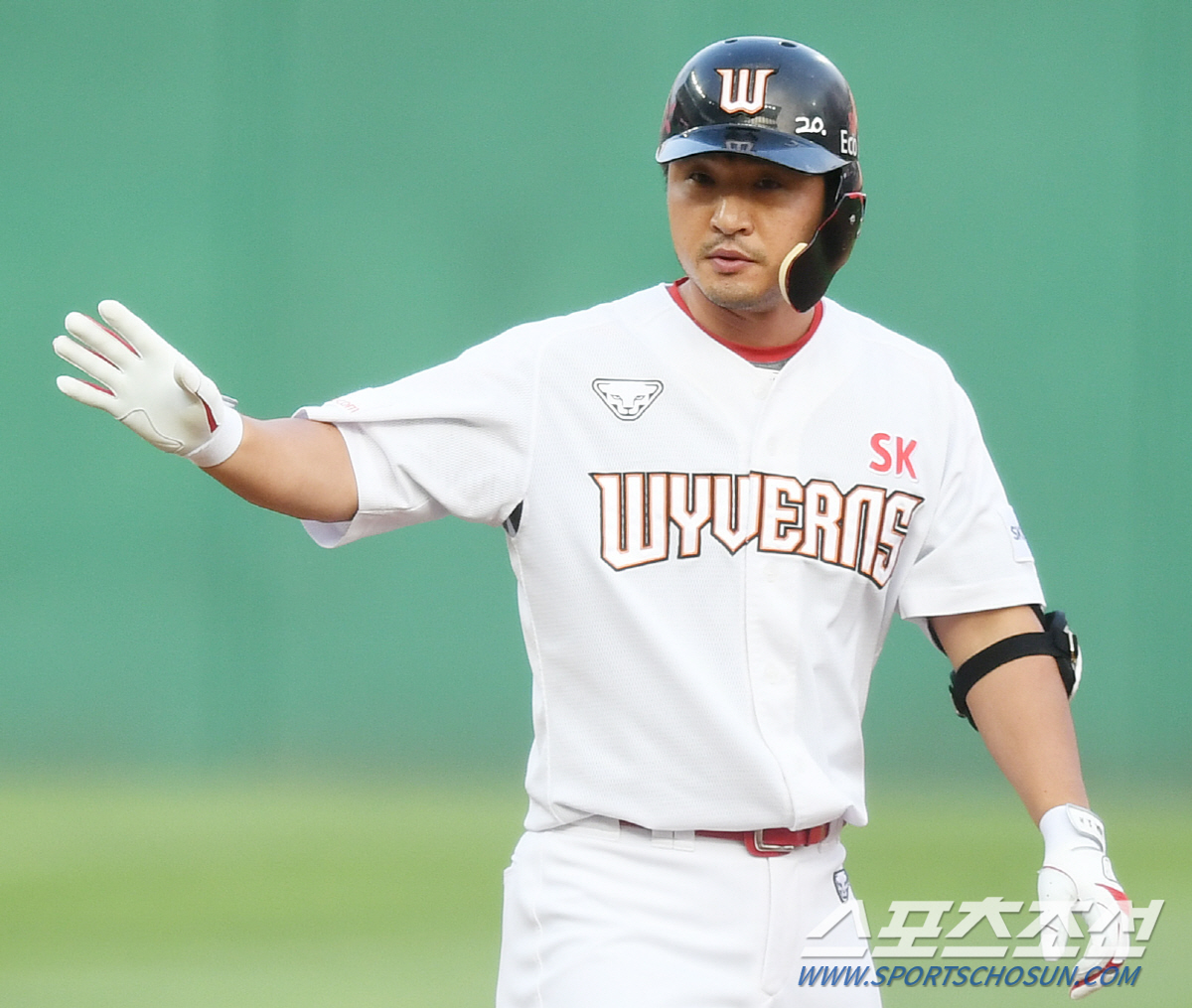 2020 KBO리그 LG 트윈스와 SK 와이번스의 경기가 26일 인천 SK행복드림구장에서 열린다. 2회말 2사 1, 3루 SK 김성현이 1타점 안타를 친 후 우익수 실책으로 2루까지 진루해 기뻐하고 있다. 인천=정재근 기자 cjg@sportschosun.com/2020.06.26/