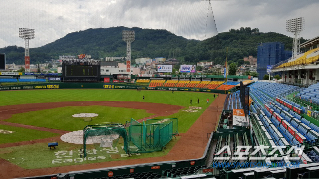 한화 측은 빗방울이 많이 가늘어짐에 따라 홈플레이트와 마운드에만 방수포를 펼쳐놓았다. 한화 선수들은 그라운드로 나와 몸을 풀고 있다. 다소 잔디가 미끄러울 수 있지만, 현재로선 야구에 큰 지장이 없을 것으로 예상된다.