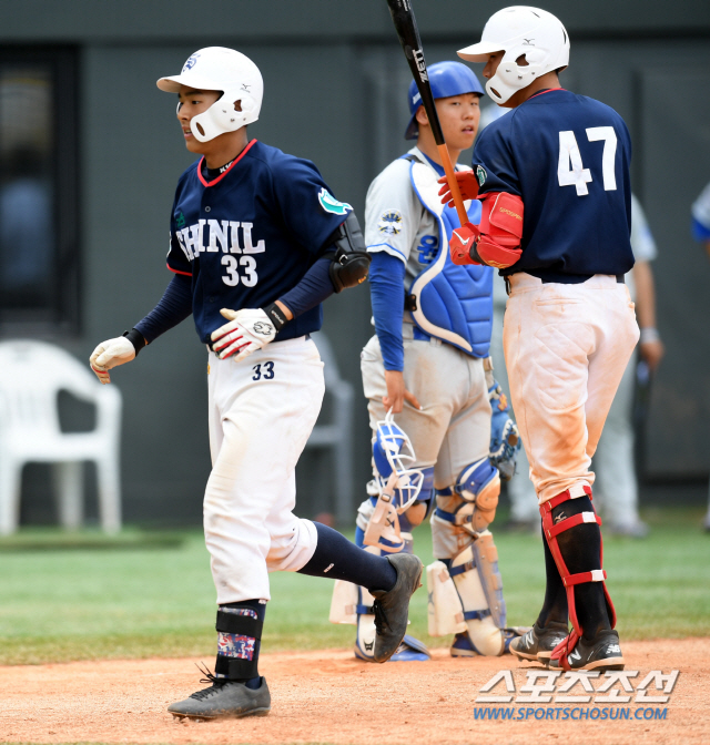 제75회 청룡기 전국고교야구선수권대회 원주고와 신일고의 경기가 26일 목동구장에서 열렸다. 9회초 신일고 김휘집이 솔로홈런을 날리고 홈인하고 있다. 목동=허상욱 기자 wook@sportschosun.com/2020.07.26/