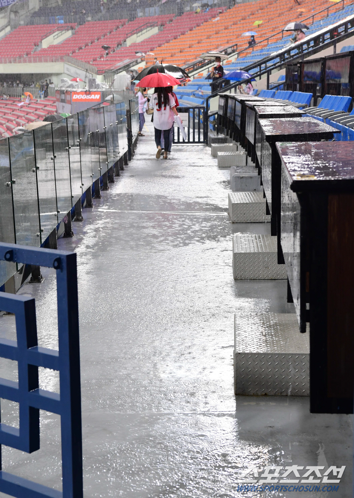 경기가 중단된 후 비는 더욱 세차게 내렸다. 앞이 보이지 않을 정도의 어마어마한 양의 비가 잠실구장 위에서 퍼붓기 시작했고, 일일이 정비를 마친 내야 흙은 순식간에 홍수가 났다. 방수포를 다시 덮을 새도 없었다. 마운드와 홈플레이트 근처에만 미니 방수포가 깔렸다. 밤 늦게까지 비 예보가 이어지는데다 그라운드 사정상 경기를 지속할 수 없는 상황. 결국 우천 '노게임'이 선언됐다. 1회에 실점한 두산 선발 투수 박치국은 다음 등판으로 기회를 미뤘고, 선취점을 먼저 뽑은 키움은 아쉽게 돌아섰다. 이날 취소된 경기는 추후 재편성된다.