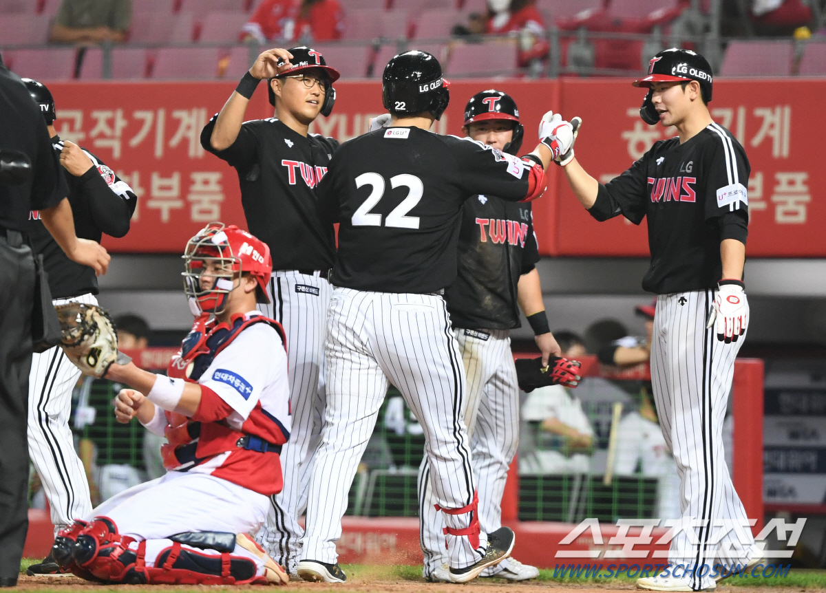 4일 광주 기아챔피언스필드에서 KBO리그 KIA와 LG의 경기가 열렸다. 5회초 2사 만루에서 김현수가 만루 홈런을 날렸다. 동료들과 하이파이브를 나누고 있는 김현수. 광주=송정헌 기자 songs@sportschosun.com/2020.08.04/