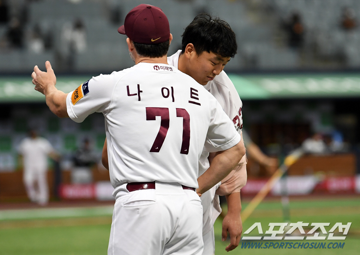 40일 만에 승리를 챙긴 이승호는 경기가 끝난 뒤 밝은 표정으로 미소 지으며 나이트 투수 코치와 포옹을 했다. 7월 3경기서 2패, 평균자책점 16.20로 부진했던 이승호가 이날 얻은 호투의 자신감이 1위 NC를 추격하는 키움에 큰 힘이 될 것으로 보인다. 고척=박재만 기자 pjm@sportschosun.com