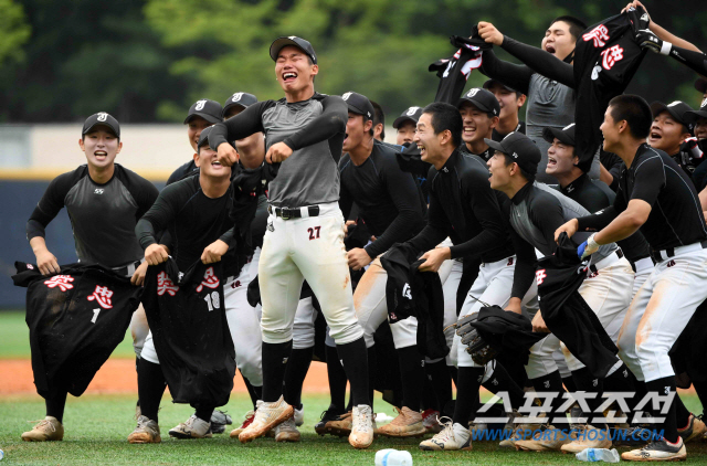 [목동=스포츠조선 허상욱 기자] 장충고가 창단 후 처음으로 청룡기 우승 트로피를 품에 안았다. 우승 전력은 아니라는 평가를 받았지만, 장충고는 이변을 연출했다. 장충고는 11일 목동구장에서 열린 제75회 청룡기 전국고교야구선수권대회 겸 주말리그 왕중왕전(조선일보·스포츠조선·대한야구소프트볼협회 공동 주최) 광주동성고와의 결승전에서 9대7 짜릿한 승리를 거뒀다. 창단 후 첫 청룡기 우승의 기쁨을 만끽하기 위해 선수들이 준비한 세리머니도 돋보였다.