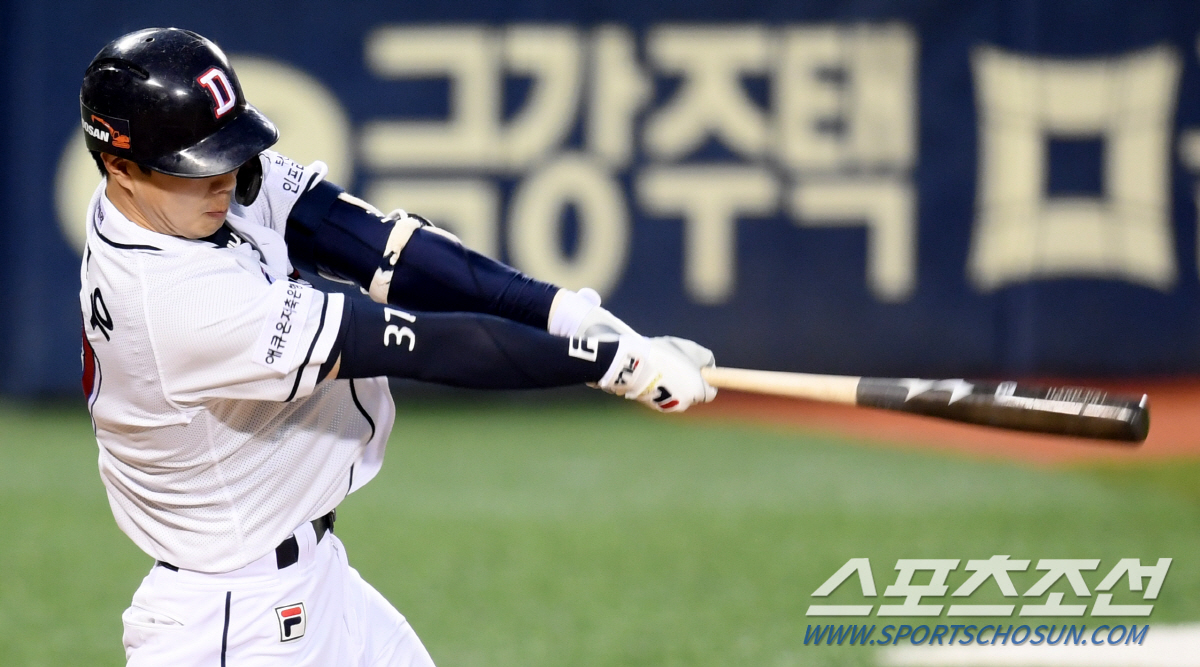 [잠실=스포츠조선 김진회 기자] 두산 베어스 리드오프 박건우가 KT 위즈 에이스 오드리사머 데스파이네의 초구를 노려쳐 솔로포로 기선을 제압했다.