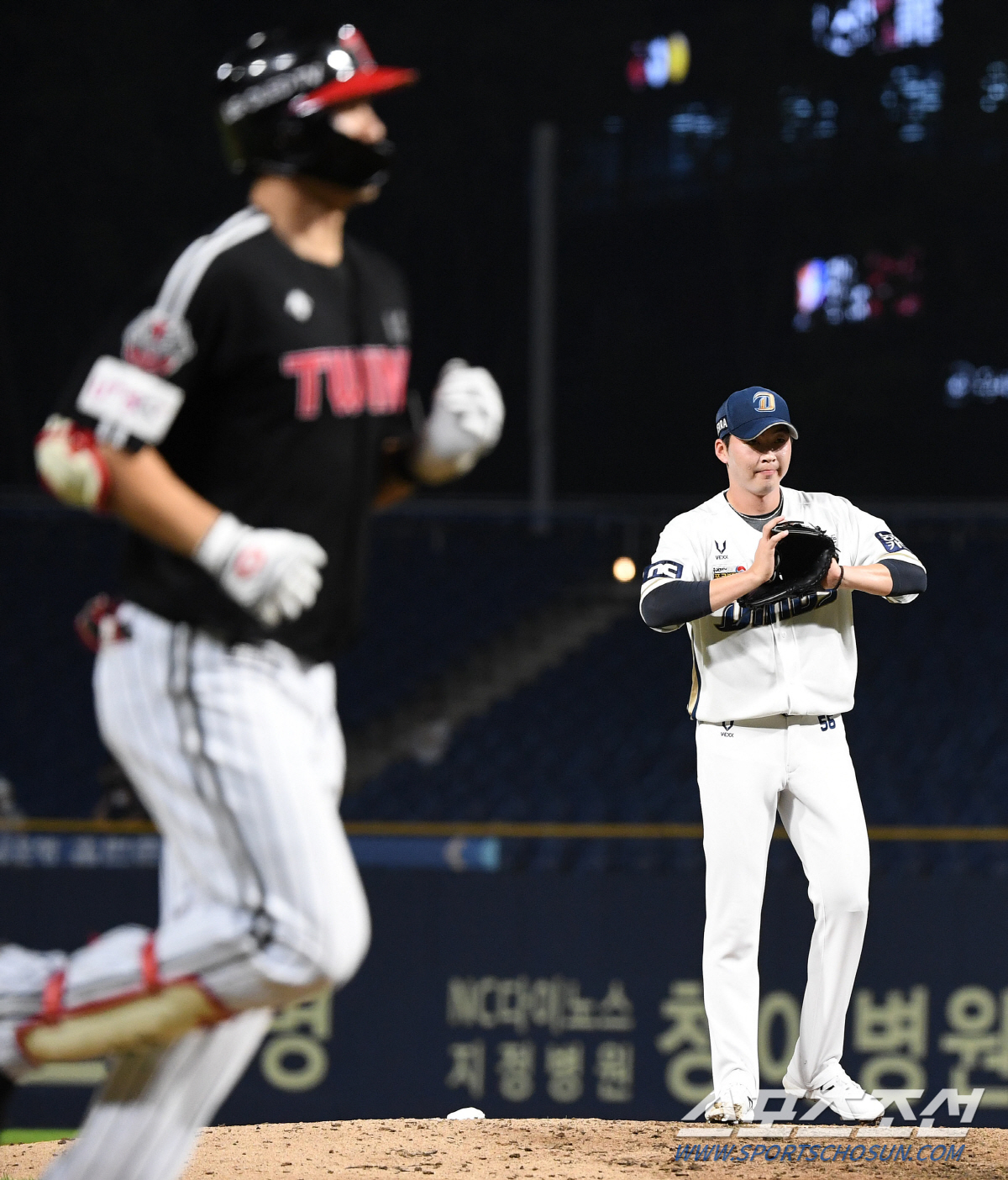 투런포 두 방으로 4실점한 문경찬이 강판되고 있다. 8회 승부가 갈린 NC는 투런포 4방을 앞세운 LG에 10-4로 패배했다.