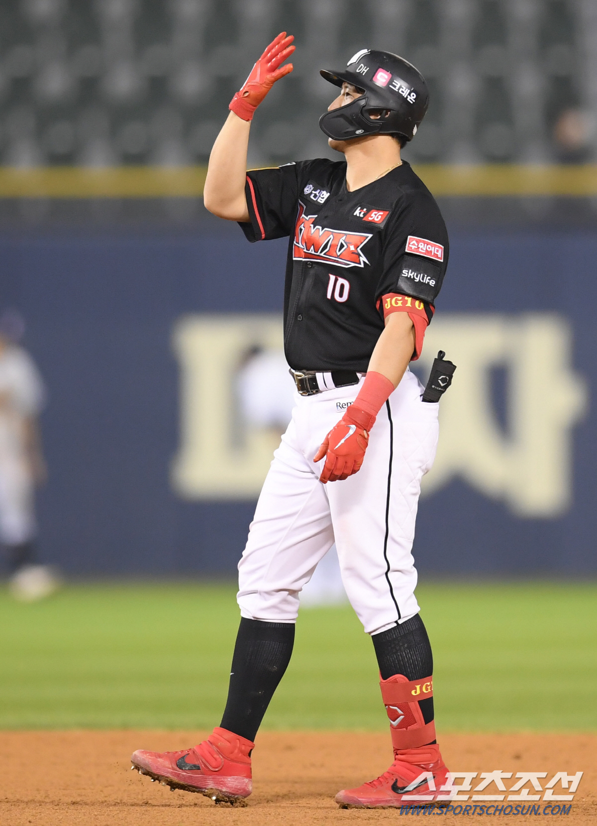 14일 서울 잠실야구장에서 열린 KT 위즈-두산 베어스 경기. 3-3으로 팽팽히 맞선 연장 12회 초 1사 1루 상황에서 타석에 황재균이 들어섰다. 앞선 5타석에서 1안타밖에 생산하지 못한 황재균은 두산 7번째 투수 박치국을 상대로 바깥쪽 빠지는 공을 걷어올렸다. 헌데 타구는 생각보다 좌측으로 뻗어나갔고, 왼쪽 담장을 맞췄다. 그 사이 발 빠른 1루 주자 배정대는 적극적으로 홈까지 파고들어 결승득점을 올렸다.