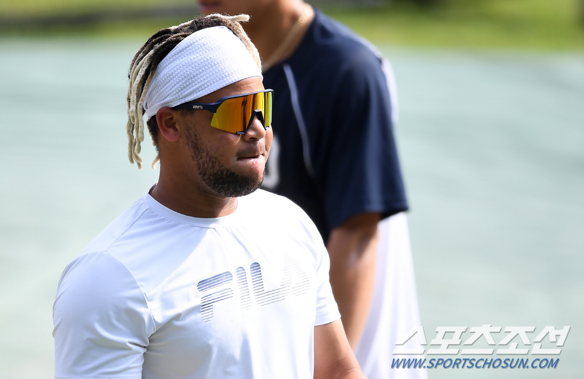 2020 KBO리그 두산베어스와 KIA 타이거즈의 팀 간 10차전 경기가 25일 서울 잠실야구장에서 열린다. 34도가 넘는 무더위 속 경기 전 두산 선수들은 그라운드에 나와 훈련에 임했다.