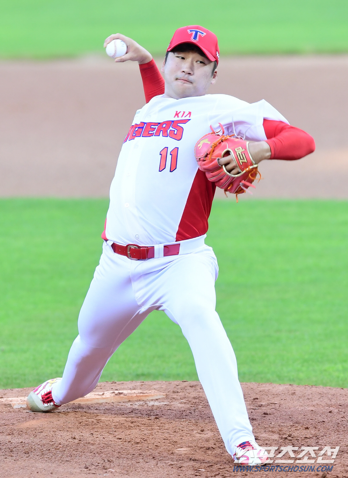 [광주=스포츠조선 박상경 기자] KIA 타이거즈 이민우가 타선 지원에 힘입어 승리 달성 기회를 잡았다.