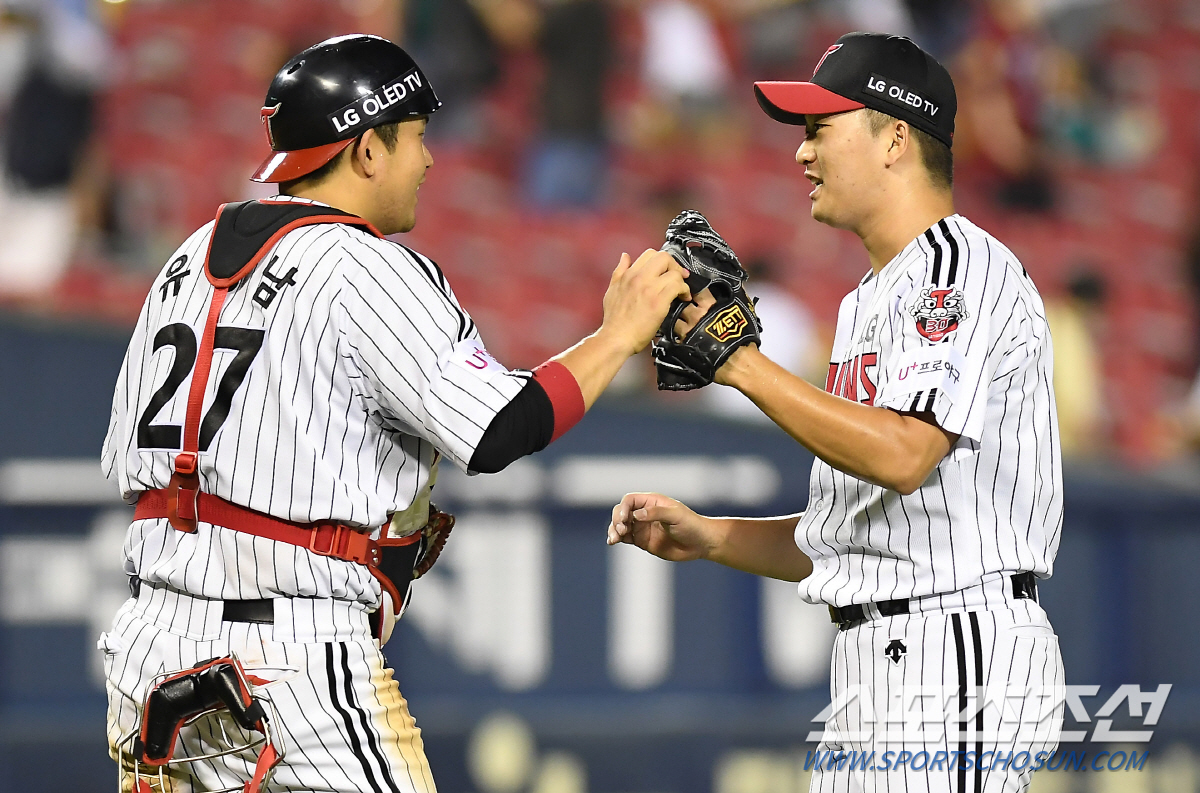 9회초 등판한 LG 마무리 고우석도 최고 구속 153km의 직구를 앞세워 두산 박세혁, 박건우, 페르난데스를 범타 처리하며 이영하와의 맞대결에서 밀리지 않았다. 강속구가 무기인 우완 정통파 클로저들을 보유한 한 지붕 두 가족 LG와 두산, 우승을 향한 승부가 앞으로 더 기대된다. 잠실=박재만 기자 pjm@sportschosun.com