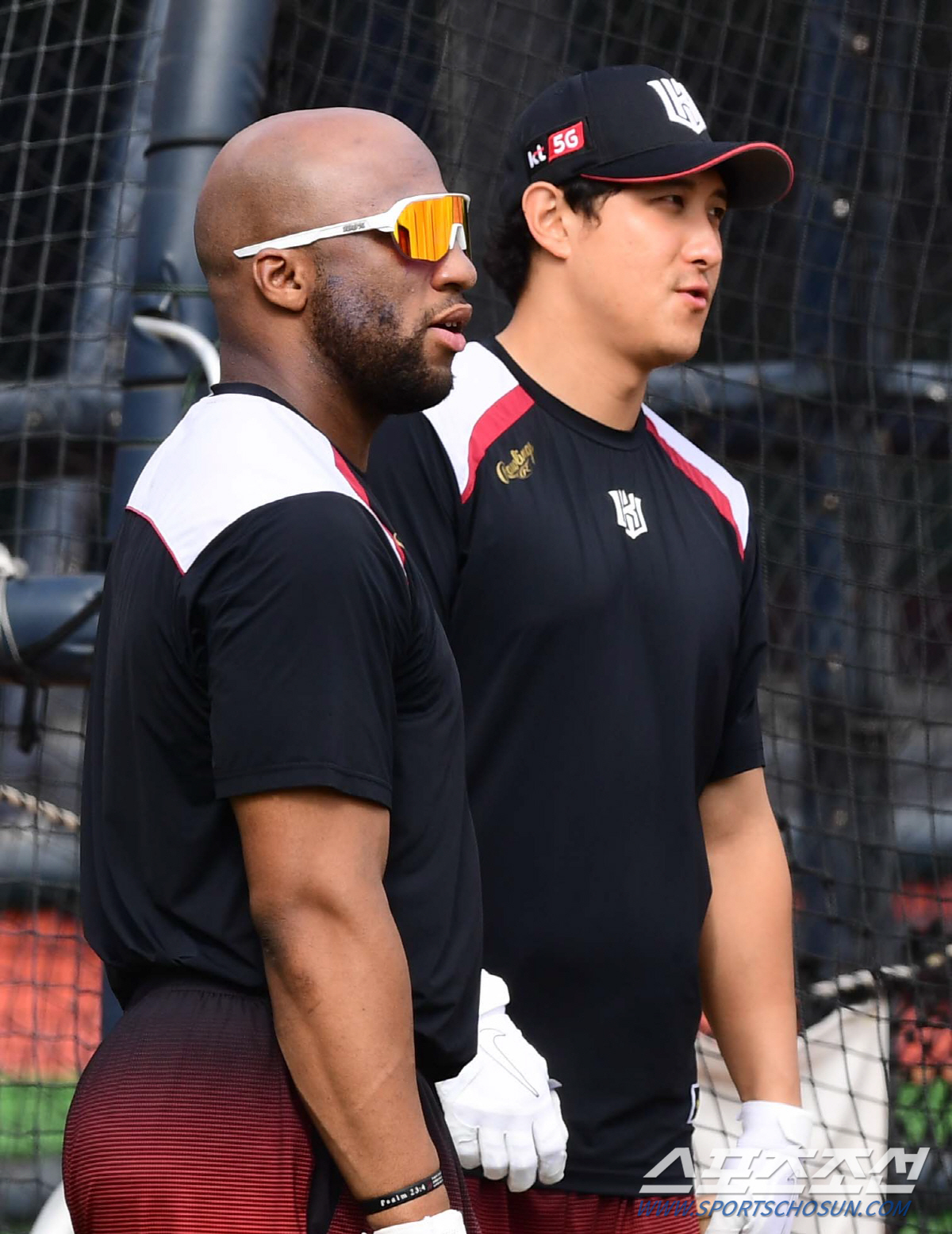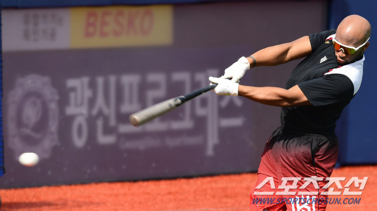 kt위즈 간판타자 로하스 주니어가 3일 수원 kt위즈파크에서 열리는 SK와의 경기를 앞두고 타격훈련에 열중하고 있다. 로하스는 9월의 첫 경기 1일 롯데와의 홈경기에서 3번타자 겸 우익수로 선발 출전해 33호 홈런포를 쏘아 올렸다. 8월에는 23경기에서 타율 0.206(97타수 20안타)에 그치며 다소 저조했던 로하스는 9월 첫날 롯데 장원삼이 던진 129km 포크볼을 밀어쳐 우측 담장을 넘겼다. 로하스는 이날 30호 홈런을 때리며 이날 30호 아치를 그린 LG트윈스 로베르토 라모스와의 격차를 3개로 늘렸다.수원=최문영 기자 deer@sportschosun.com