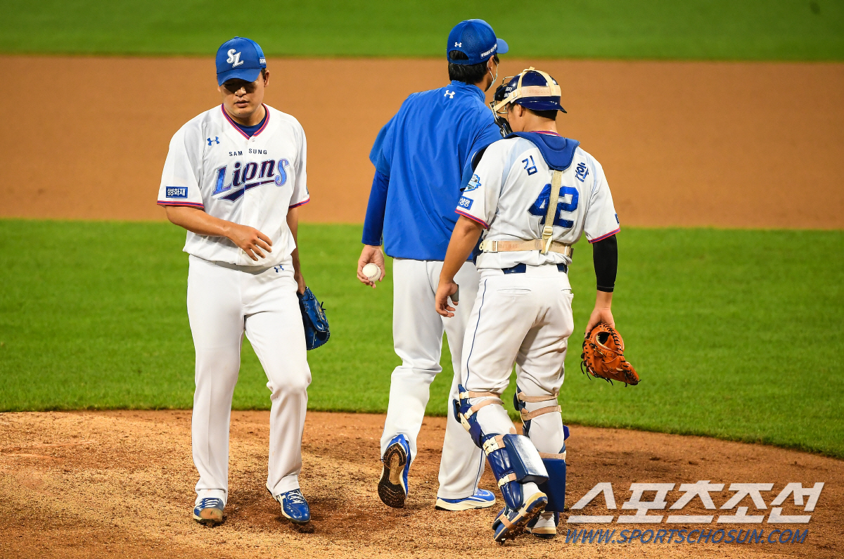 투구 내용에 기복은 있었지만 2경기 무실점 피칭으로 1군 마운드에 적응 중이던 심창민은 2년 만에 홈 경기장인 대구삼성라이온즈파크 마운드에 올라 투구를 했다. 8회초 11대1 여유로운 상황, 심창민의 투구 내용은 실망스러웠다. 아웃카운트를 두 개 처리하는 동안 피안타 2개 볼넷 3개 4실점 폭투까지 기록하며 0이던 평균자책점도 13.5까지 급등했다. 우리가 알던 모습은 아니었다. 결국 정현욱 코치는 마운드에 올라 공을 건네받은 뒤 심창민을 내려보냈다.