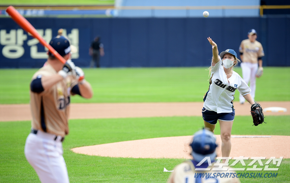 KIA 타이거즈와 NC 다이노스의 2020 KBO 리그 경기가 12일 창원NC파크에서 열렸다. 경기 전 NC 루친스키의 아내 쉐리단이 시구를 하고 있다. 창원=허상욱 기자 wook@sportschosun.com