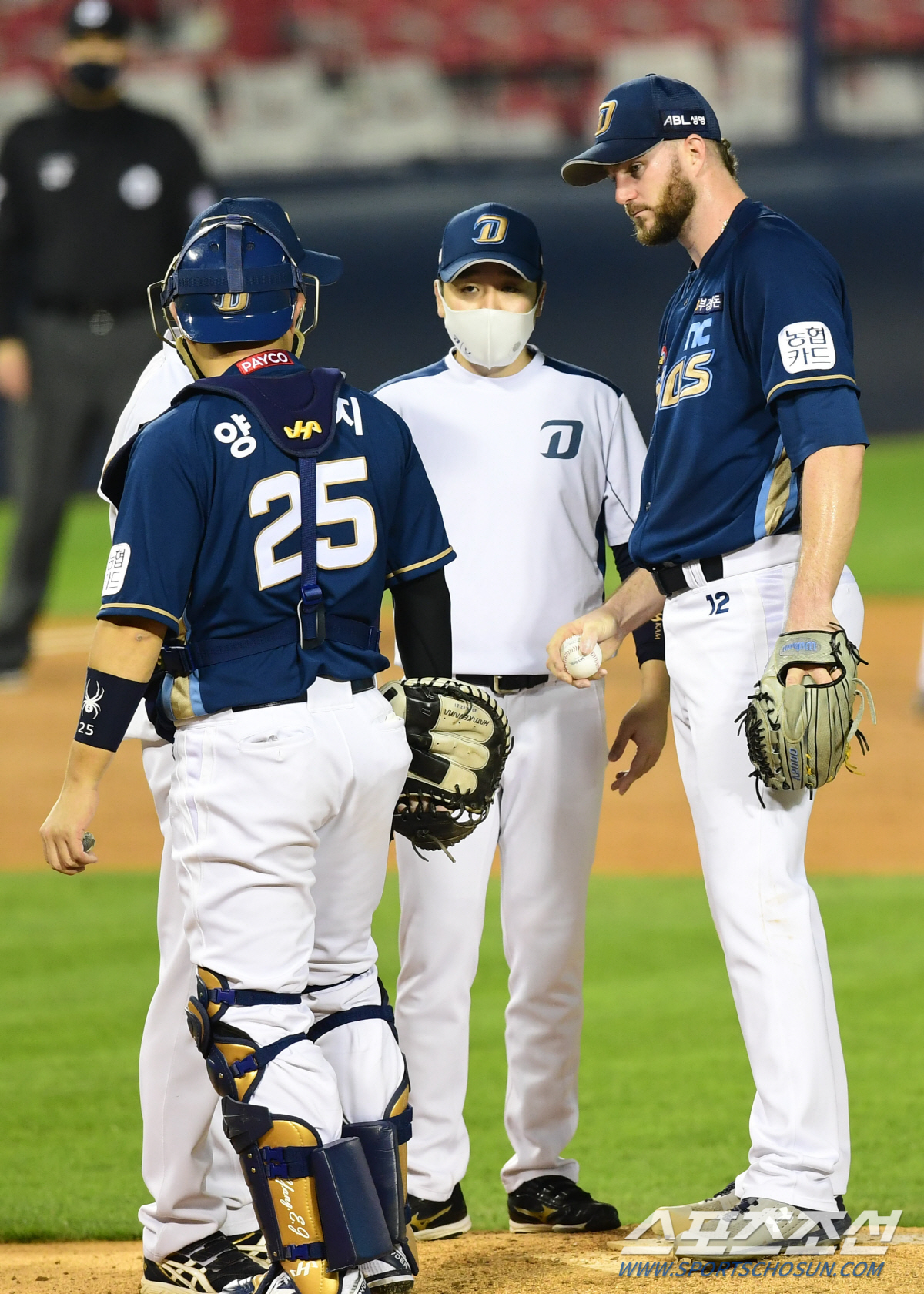 [잠실=스포츠조선 나유리 기자]임무 완수 실패. NC 다이노스 마이크 라이트가 연속 실점을 극복하지 못하고 무너졌다.
