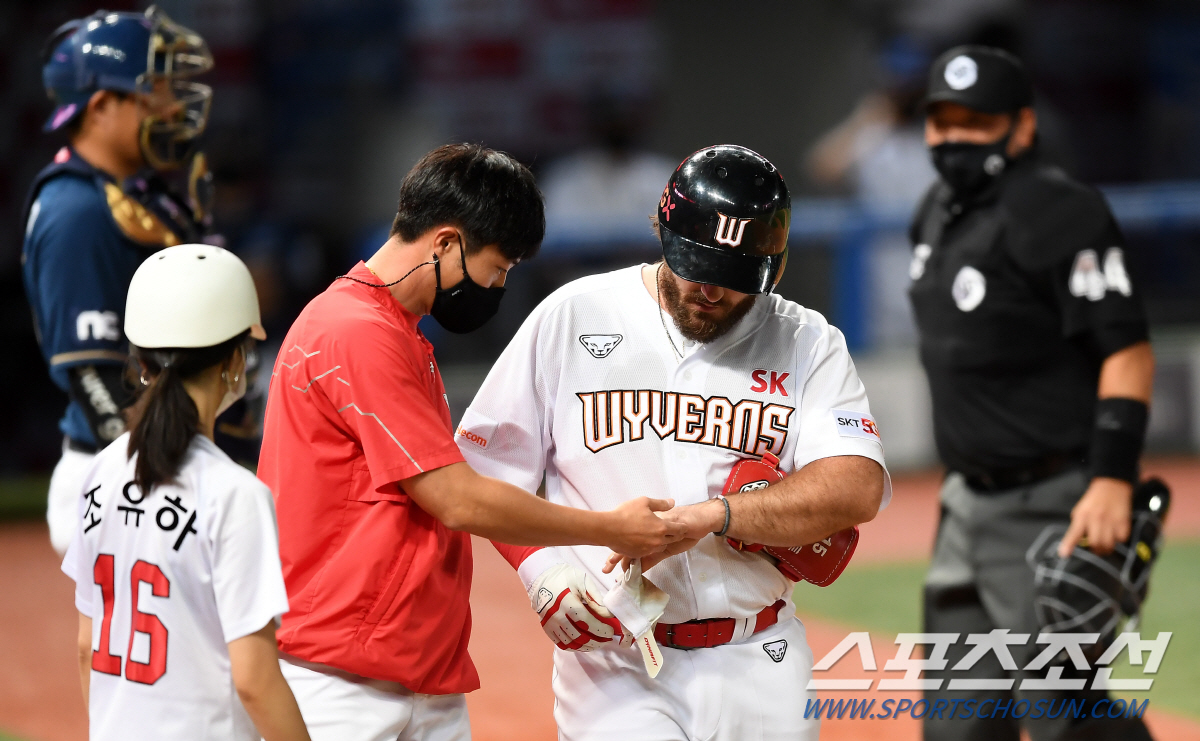 SK 관계자는 "왼 손등 타박상으로 아이싱 조치를 했다. 곧바로 병원으로 이동해 검진을 받는다"고 밝혔다.
