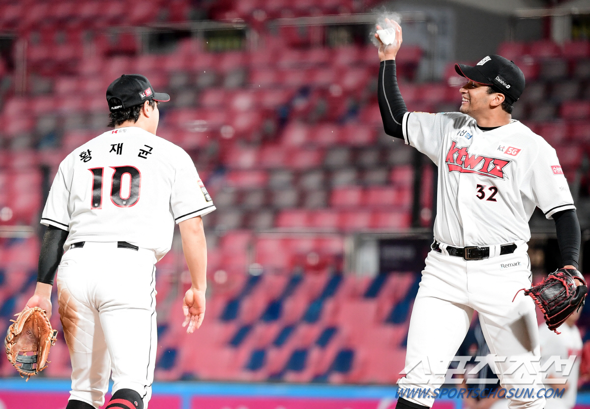 위기 관리 능력이 돋보였다. 쿠에바스는 3회와 8회 두번의 병살타로 주자 출루 이후 실점하지 않고 위기를 넘겼고, 투구수 관리도 효율적으로 이뤄졌다. 8회까지 투구수는 98개. 9이닝 완봉까지도 예상됐지만, KT는 9회에 마무리 김재윤을 올렸고 3점 차 리드를 끝까지 지켜내며 세이브를 챙겼다.
