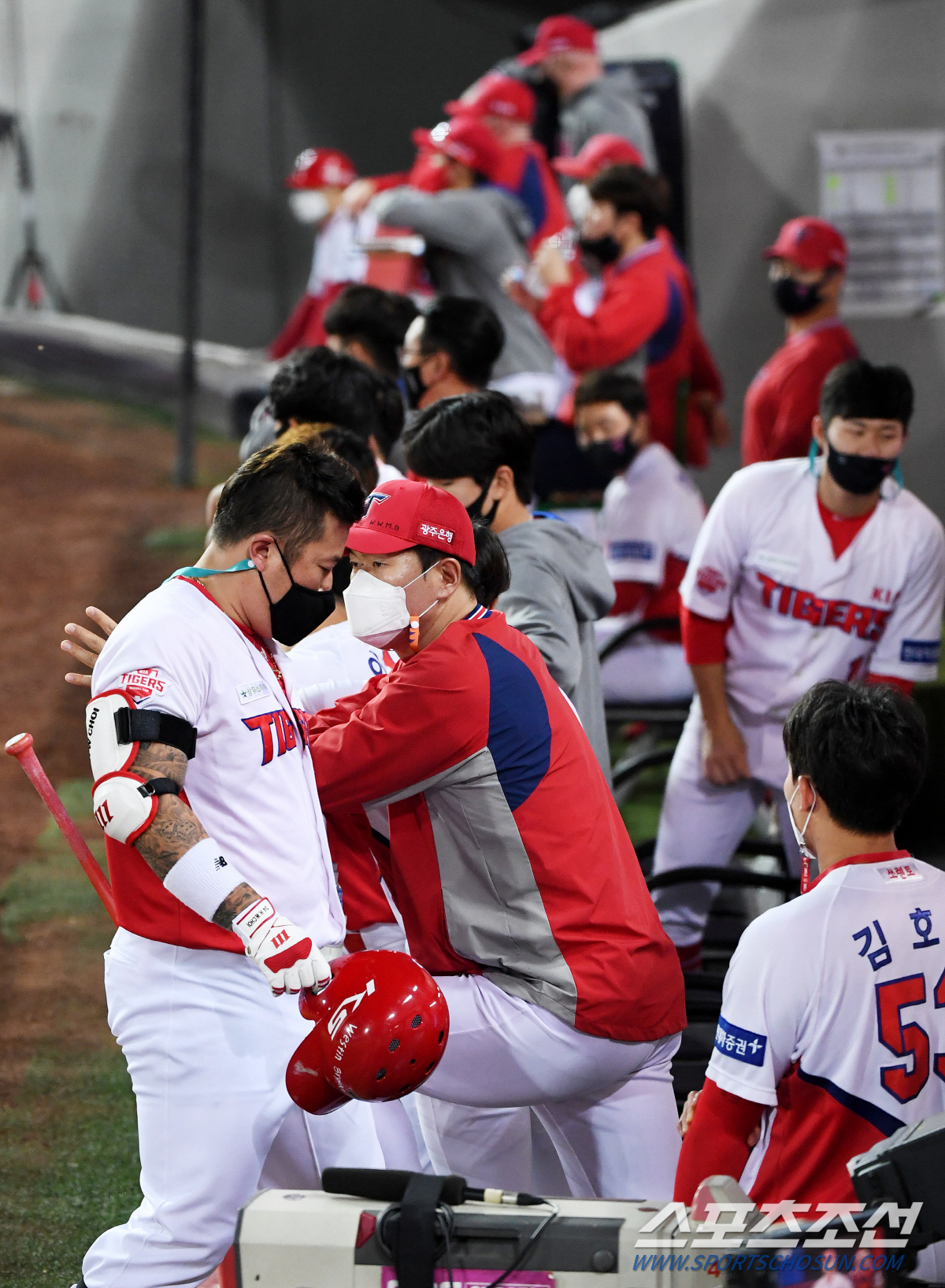 2020 KBO리그 키움 히어로즈와 KIA 타이거즈의 경기가 23일 광주 KIA챔피언스필드에서 열렸다. 2회말 최형우가 삼진을 당한 후 들어오고 있다. 광주=정재근 기자 cjg@sportschosun.com/2020.09.23/