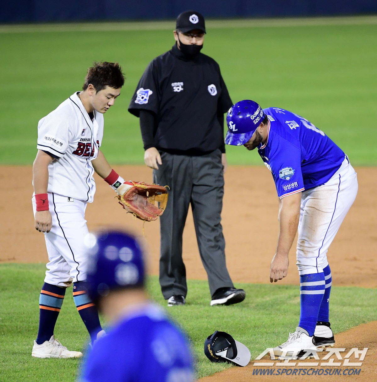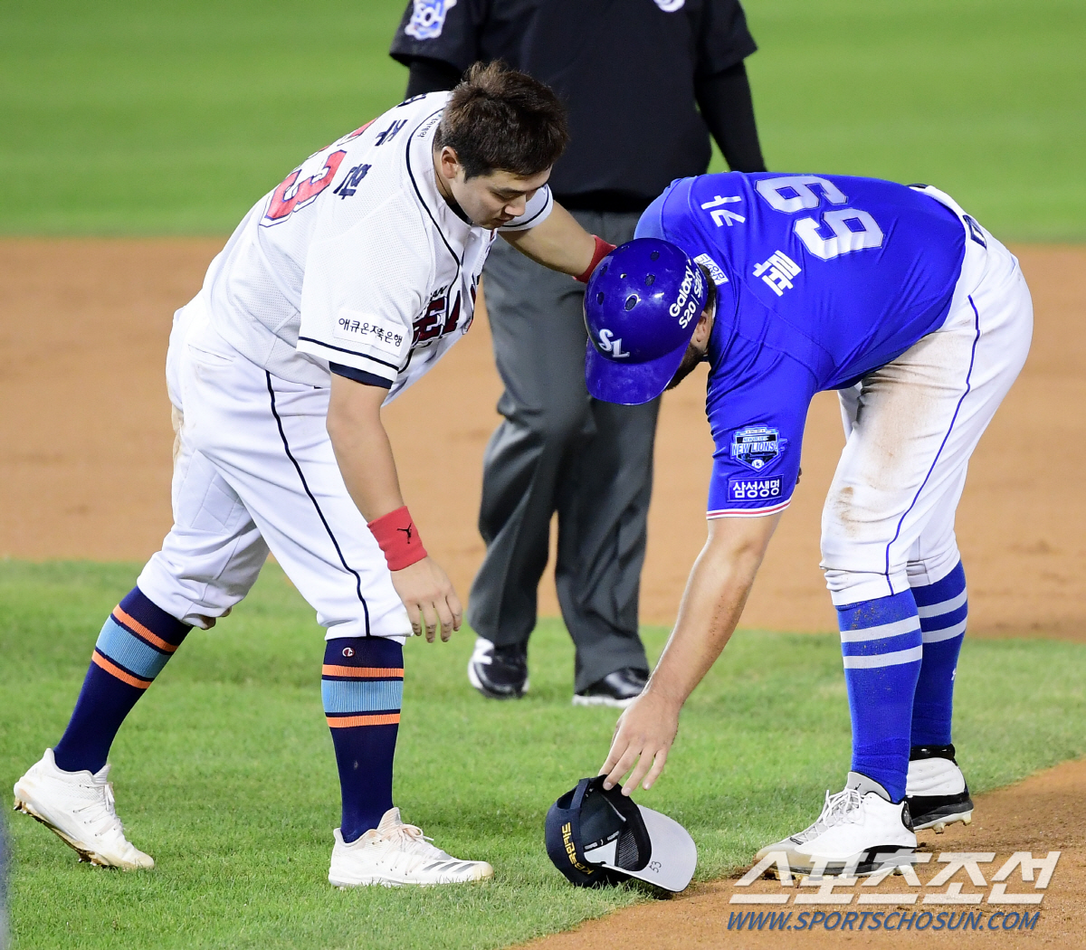 최주환은 팔카와의 충돌 이후 목에 담 증세를 느꼈고, 선수보호 차원에서 이유찬과 교체됐다. 하마터면 큰 부상으로 이어질 뻔 했던 아찔한 순간이었다.