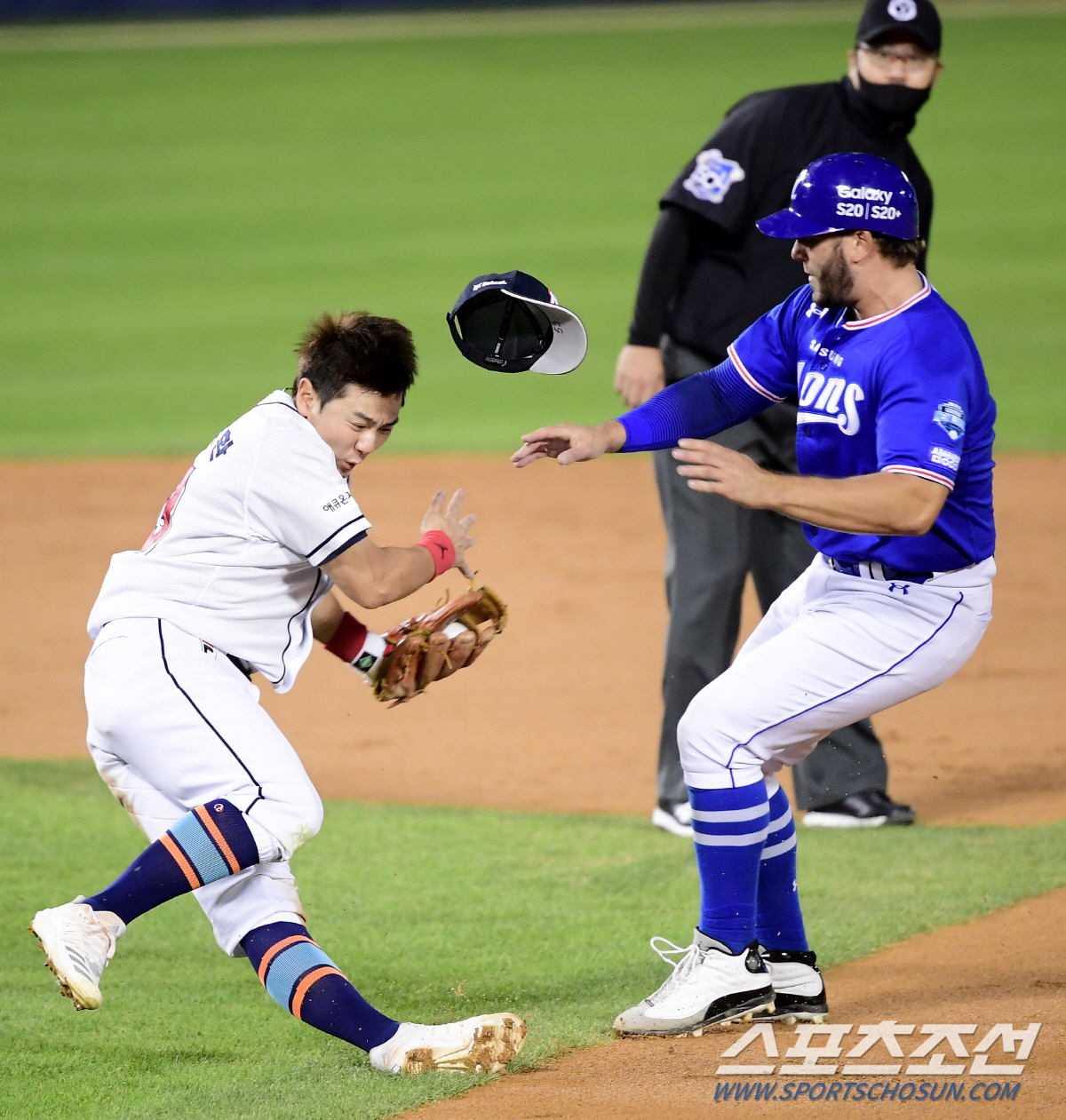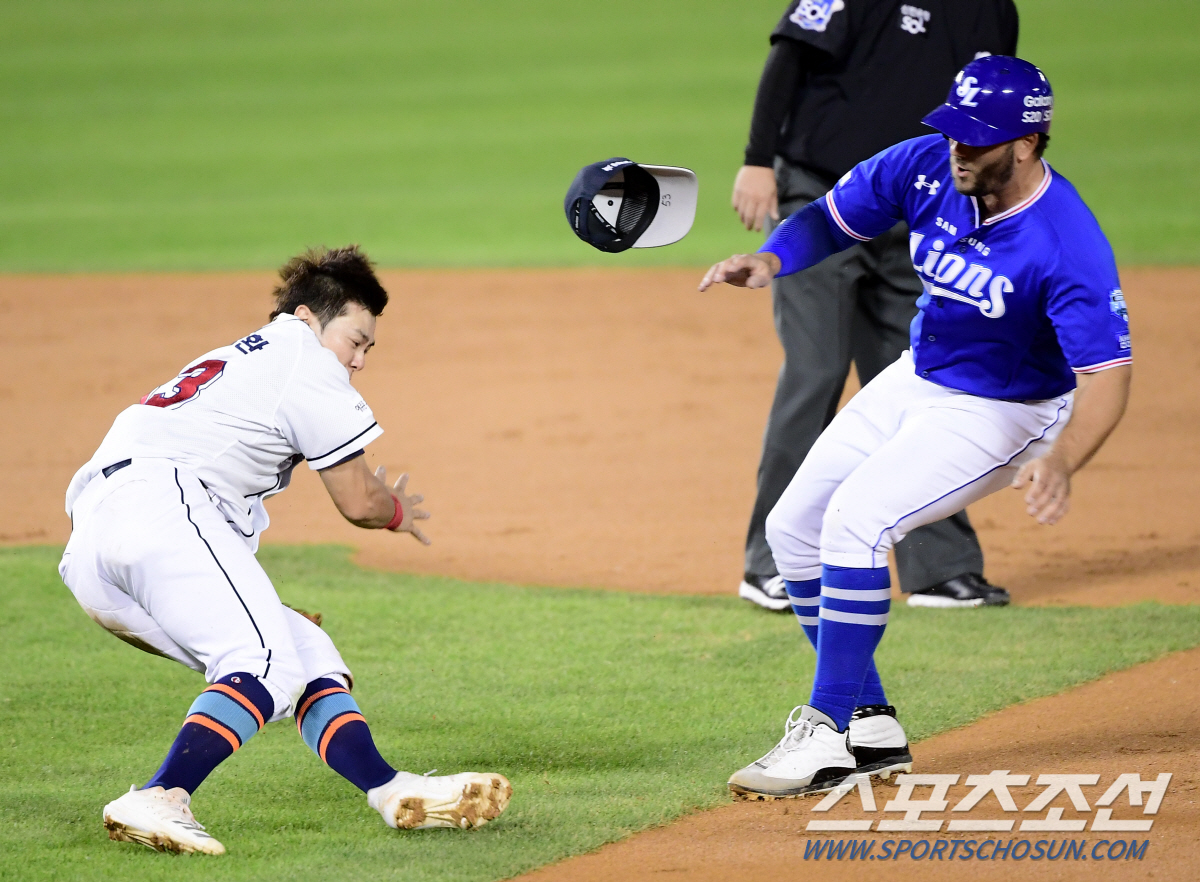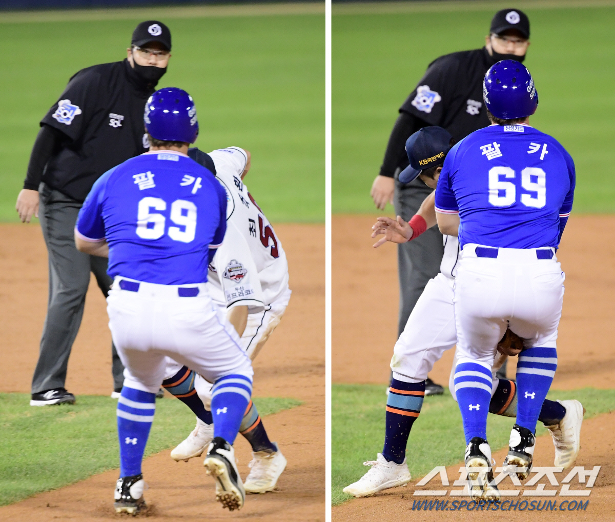 김태형 감독은 재빨리 그라운드로 나와 '수비 방해가 아니냐'며 짧은 항의에 나섰지만, 심판진은 '정상적인 플레이'로 판정했다.