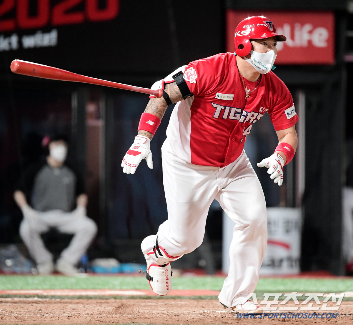 [고척=스포츠조선 김진회 기자] KIA 타이거즈 해결사 최형우가 개인통산 100경기 등판 기록을 세운 키움 히어로즈의 에이스 제이크 브리검을 상대로 선제 투런포를 작렬시켰다.