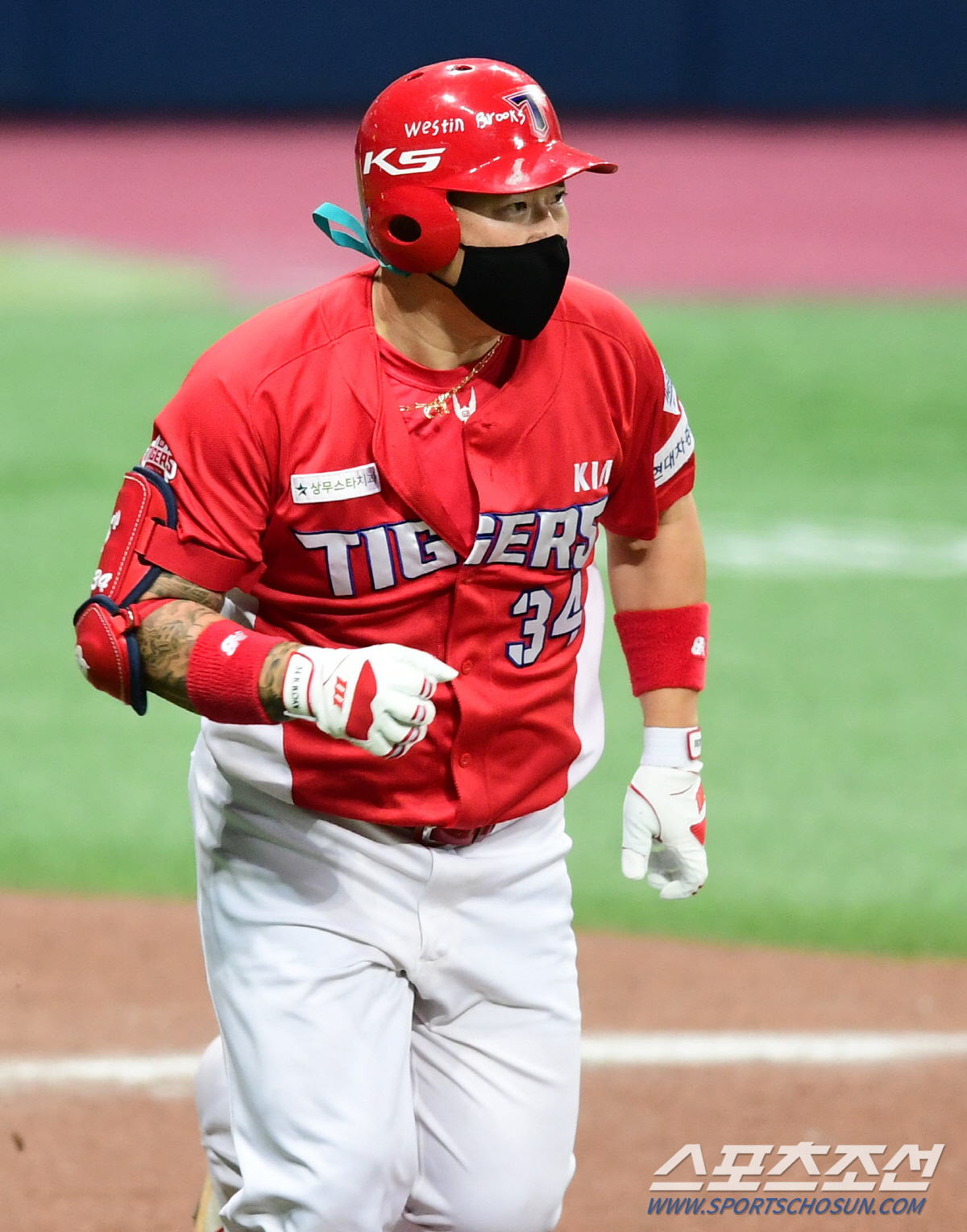 | KBO리그 KIA타이거즈와 키움 히어로즈의 경기가 29일 고척스카이돔에서 열렸다. KIA 유민상이 4회초 2사 2루에서 터커 적시타때 득점을 올리고 있다. 고척=최문영 기자 deer@sportschosun.com /2020.09.29/ |
