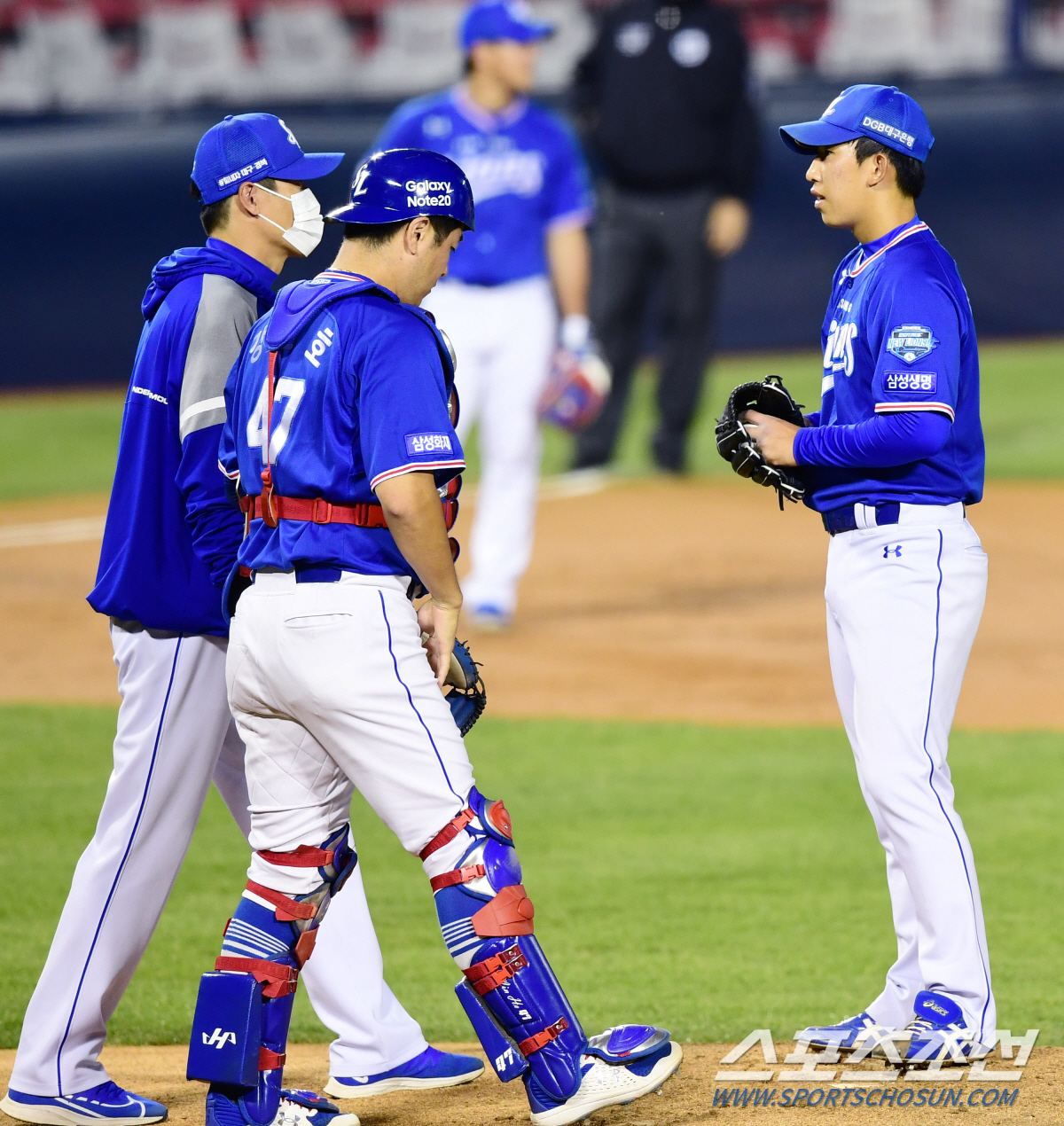 [잠실=스포츠조선 노재형 기자] 삼성 좌완투수 허윤동이 한 이닝에 볼넷 5개를 내주며 선취점을 허용했다.