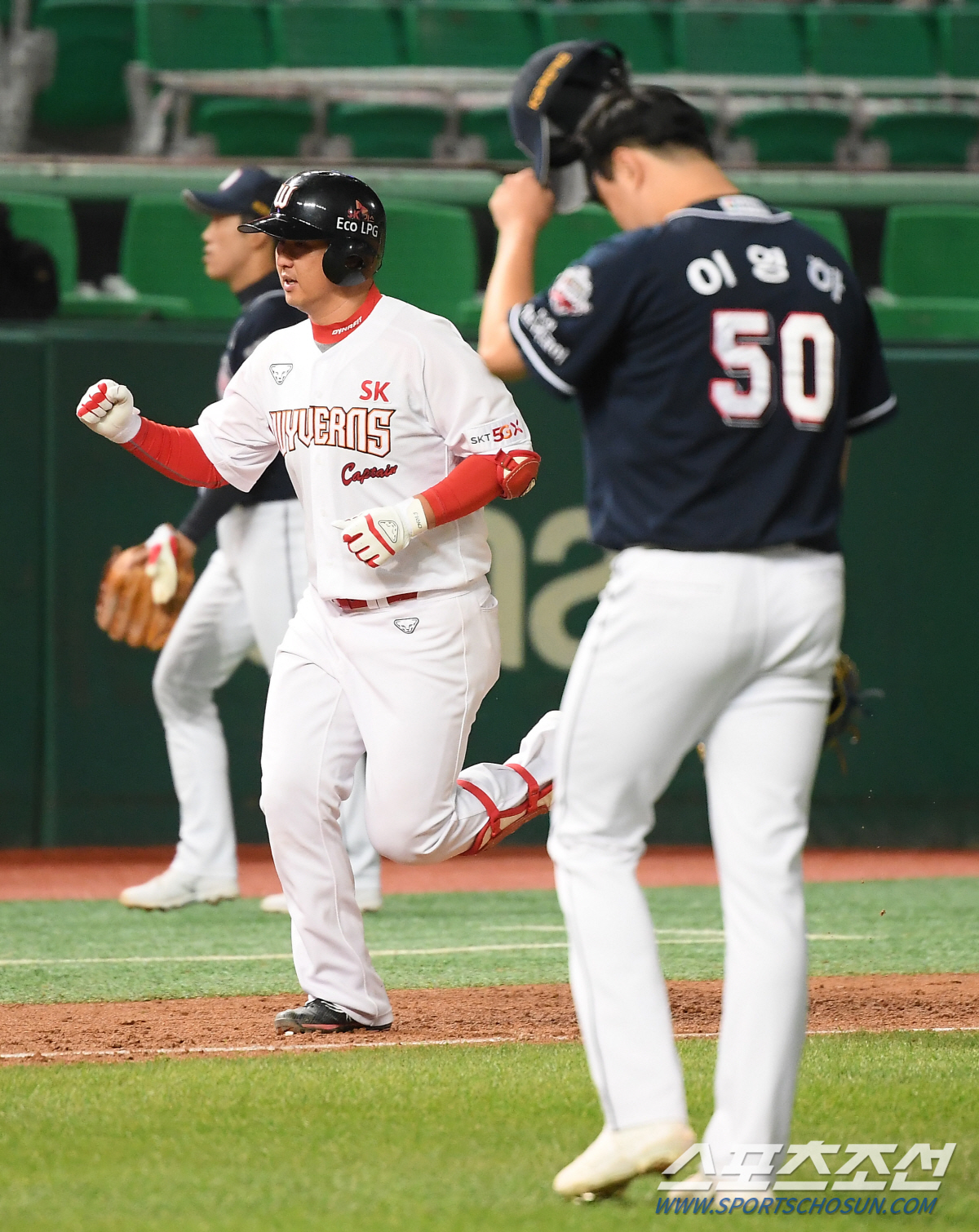 9회초 2사 1,3루를 무실점으로 막아낸 후 SK에게 찬스가 왔다. 최지훈과 오태곤이 모두 내야 땅볼로 잡히면서 이대로 기회가 무산되는듯 했으나, 3번타자 최 정이 자존심을 살렸다. 두산 마무리 투수 이영하를 상대한 최 정은 초구부터 과감하게 스윙했다. 초구 헛스윙. 그리고 2구째 이영하의 138㎞짜리 슬라이더가 한가운데에 들어왔고, 최 정의 노림수에 걸렸다. 크게 잡아당긴 최 정은 힘으로 왼쪽 담장을 넘기는 끝내기 솔로 홈런으로 연결시켰다. 두산전 7연패를 끊는 귀중한 점수였다.