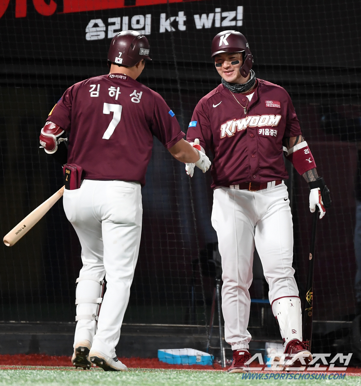 이날 전까지 29홈런을 기록하고 있던 키움 김하성의 방망이는 시작부터 매서웠다. 첫 타석 KT 선발 배제성의 공을 노려 안타를 날린 뒤 두 타석만에 멀티히트를 달성했다. 이어진 타석에서 2루타, 홈런을 연달아 날리며 4타수 4안타 맹타를 휘둘렀다.