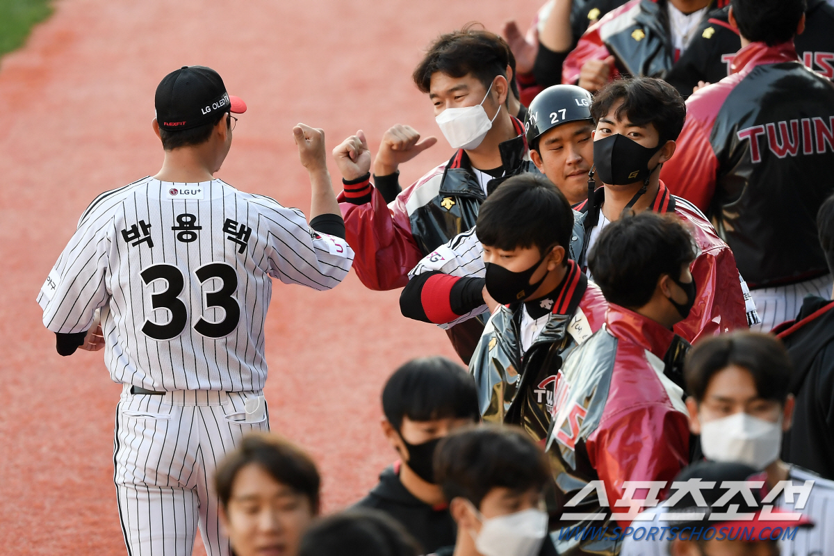 2020 KBO리그 LG 트윈스와 KIA 타이거즈의 경기가 17일 잠실구장에서 열렸다. KBO 최초 2500안타를 기록을 달성한 LG 박용택이 시상식 후 선수들과 하이파이브를 하고 있다. 잠실=박재만 기자 pjm@sportschosun.com/2020.10.17/