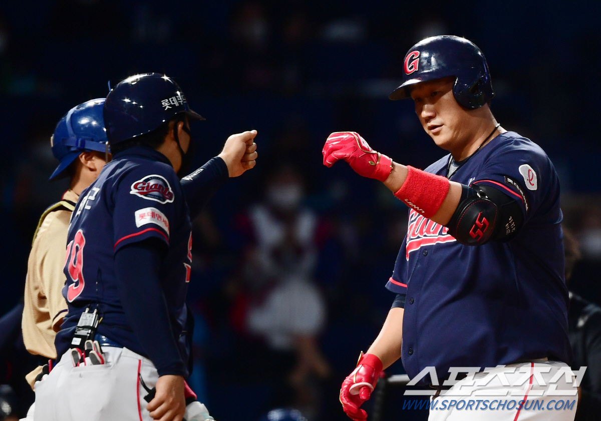 그런데 끝이 아니었다. 7번 한동희마저 박민호의 바깥쪽 높은 138㎞의 직구를 걷어올려 가운데 담장을 넘기는 솔로포를 날린 것. 4명의 타자가 연달아 홈런을 치며 4점을 뽑은 롯데는 5-5 동점을 만들었다.