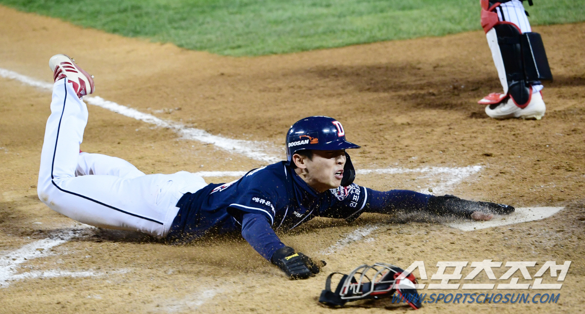 그리고 양팀은 정규 이닝 마지막 9회 단 한번의 공격만 남겨뒀다. 두산은 9회초 선두타자 김재환의 볼넷 출루로 득점 찬스를 만들었다. 대주자 이유찬이 1루에 투입됐고, 허경민이 희생번트를 시도했다. 번트 타구를 처리하는 과정에서 LG의 실책이 겹쳤다. 1루 악송구에 이어 홈을 지키던 포수 이성우가 3루를 돌아 홈까지 파고든 이유찬을 상대로 태그 시도조차 하지 못하면서 두산은 천금같은 추가점을 얻었다. 1점 차에서 2점 차로 다소 숨통이 트였다.