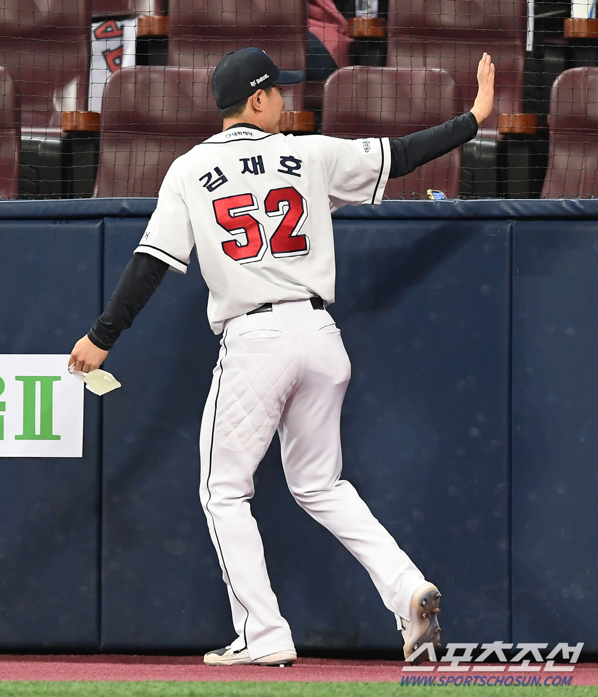 2020 KBO리그 플레이오프 4차전 두산 베어스와 KT 위즈의 경기가 13일 고척스카이돔에서 열렸다. 경기 전 두산 김재호가 아들에게 인사를 건네고 있다. 고척=박재만 기자 pjm@sportschosun.com/2020.11.13/