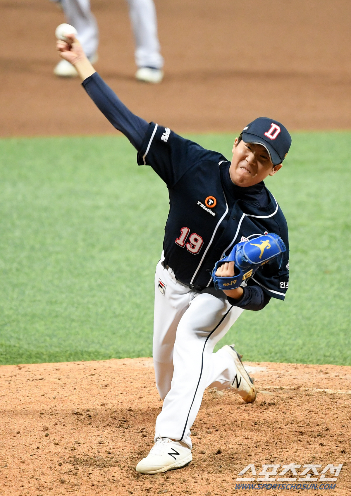 2020 KBO리그 한국시리즈 2차전 두산 베어스와 NC 다이노스의 경기가 18일 고척스카이돔에서 열렸다. 두산 김민규가 역투하고 있다. 고척=허상욱 기자 wook@sportschosun.com/2020.11.18/
