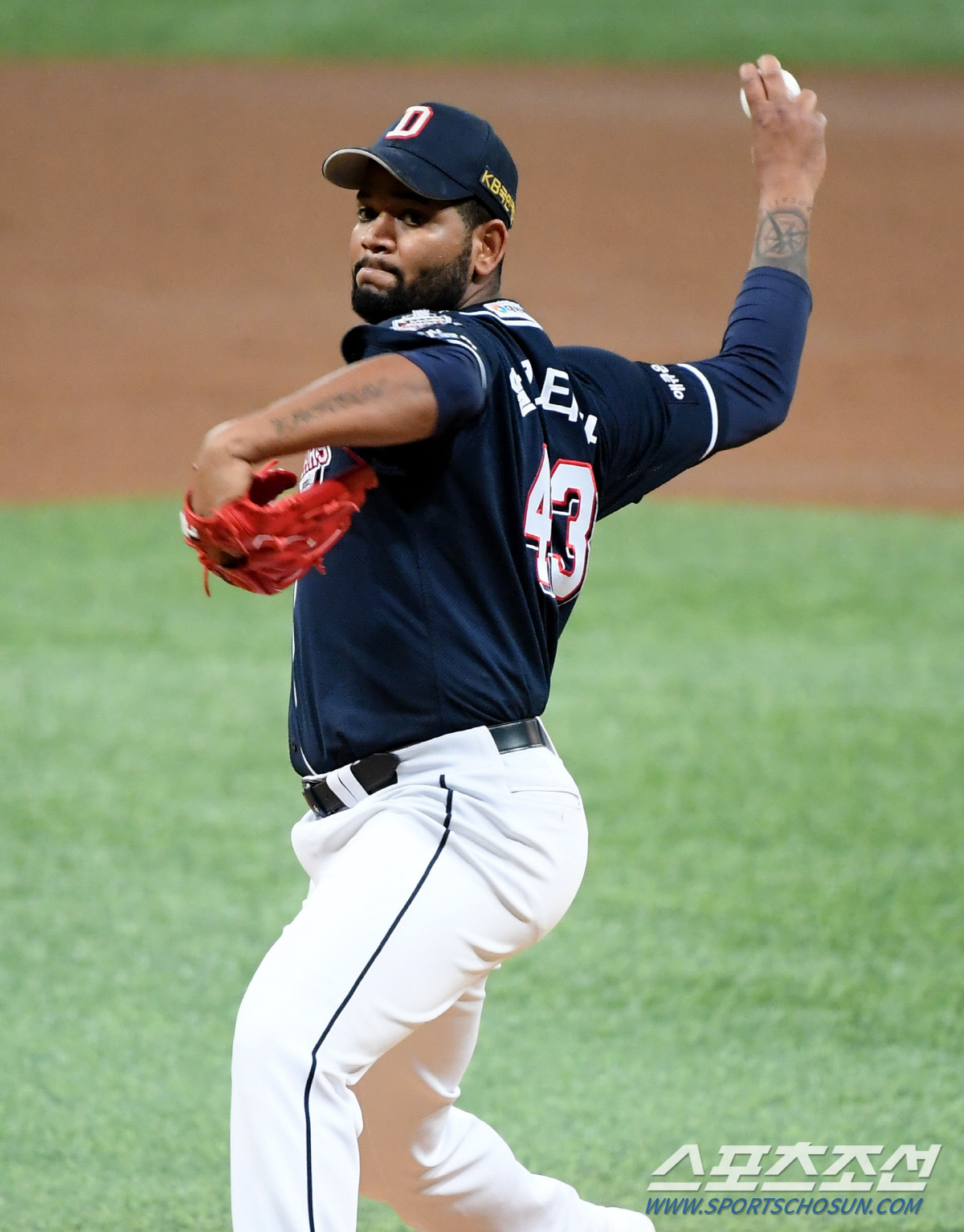 2020 KBO 리그 한국시리즈 6차전 두산 베어스와 NC 다이노스의 경기가 24일 고척스카이돔에서 열렸다. 두산 선발투수 알칸타라가 힘차게 공을 던지고 있다. 고척=허상욱 기자 wook@sportschosun.com/2020.11.24/