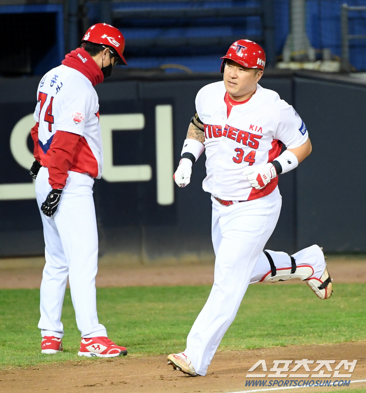 KT 위즈와 KIA 타이거즈의 2020 KBO 리그 경기가 28일 광주KIA챔피언스필드에서 열렸다. 1회말 2사 1루, KIA 최형우가 역전 2점홈런을 날리고 홈인하고 있다. 광주=허상욱 기자 wook@sportschosun.com/2020.10.28/