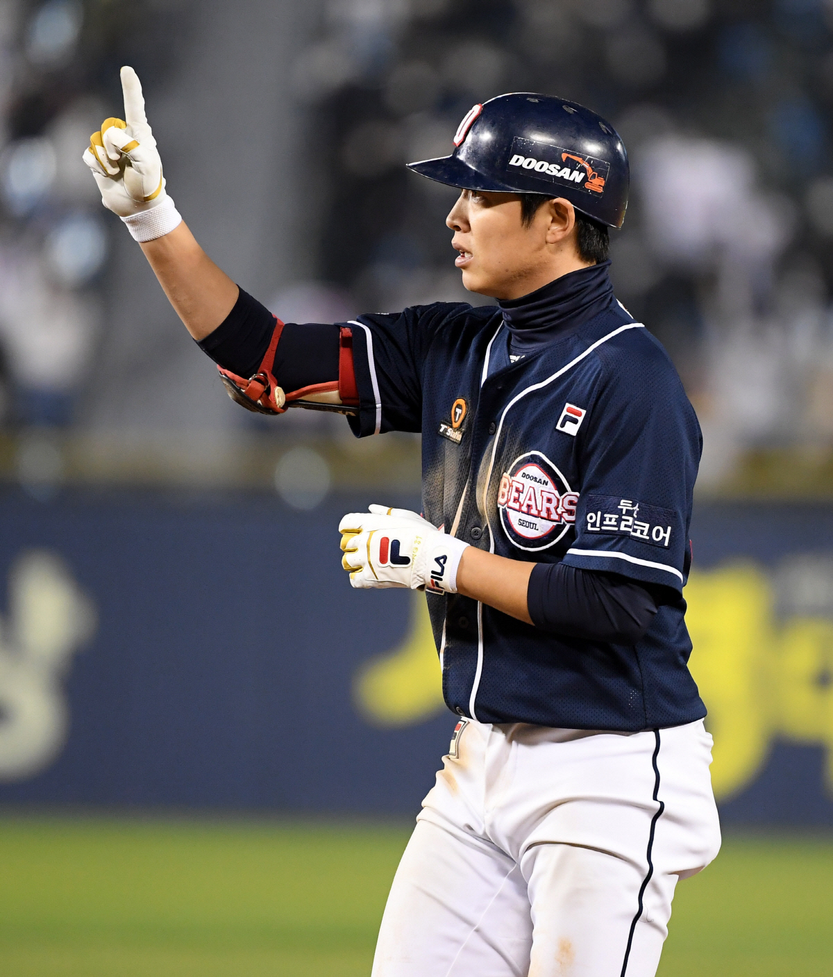 정수빈은 올해 타율 2할9푼8리 5홈런 59타점, 출루율 0.368, 장타율 0.396을 기록했다. 한화에 대입하면 300타석 이상 기준 타율과 타점, 장타율 부문 1위다. 특히 12개의 홈런을 친 노시환(0.387)보다 높은 장타율이 돋보인다. 홈런은 6위, 출루율은 3위(1위 최재훈 2위 이용규)다.