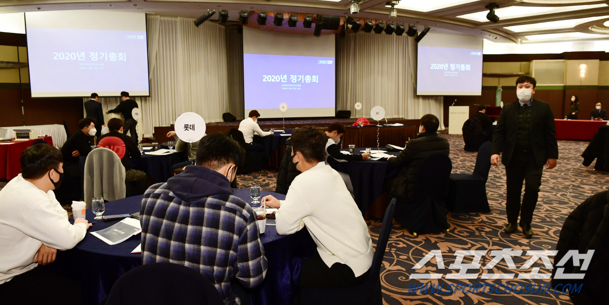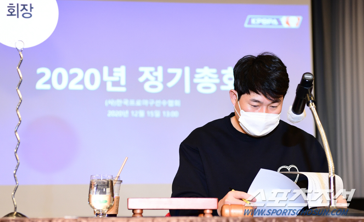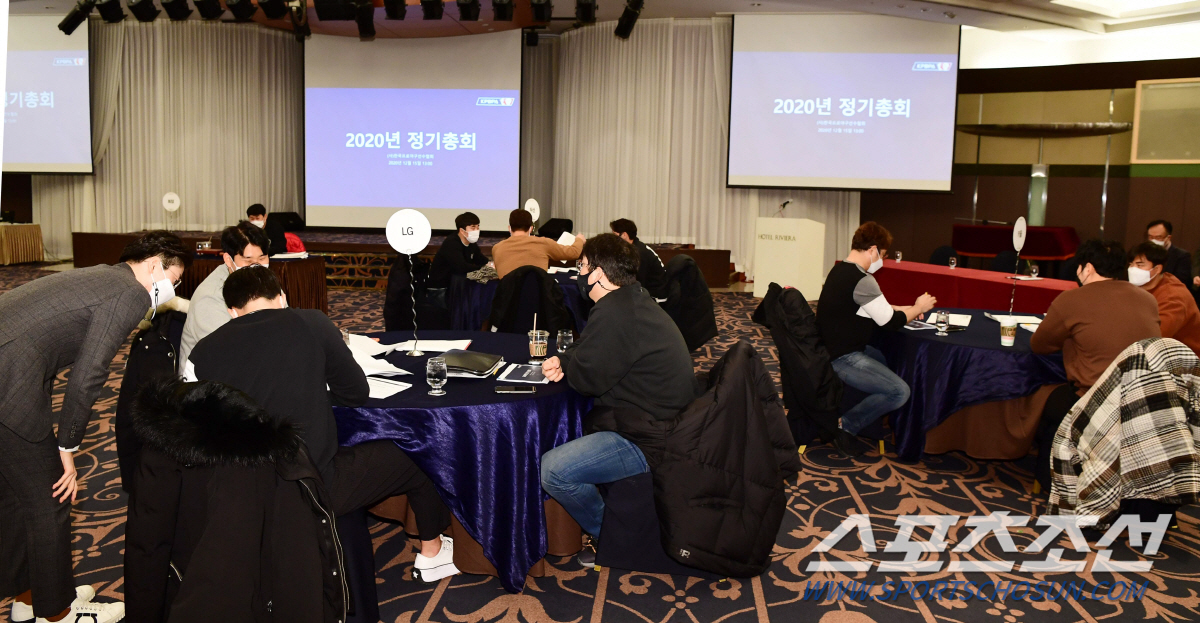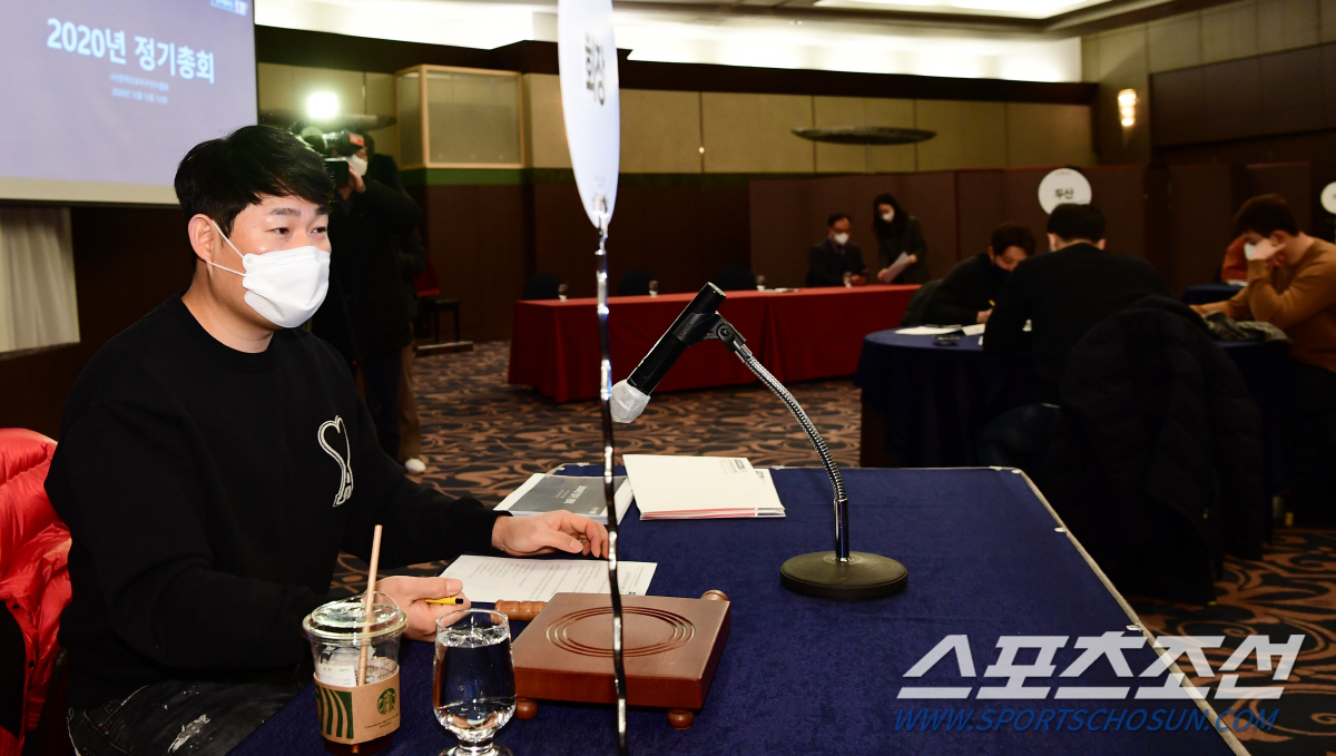[스포츠조선 최문영 기자] 양의지 신임 회장 체제에서의 프로야구 선수협의회 첫 정기총회가 15일 열렸다. 본래 선수협 총회는 KBO리그 대다수 선수들이 참석하지만, 코로나 상황을 감안해 10개의 프로야구 구단에서 대표자 각 3명씩이 참석하는 약식총회의 형태로 열렸다.